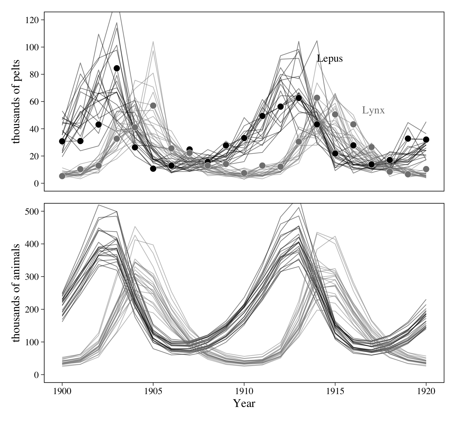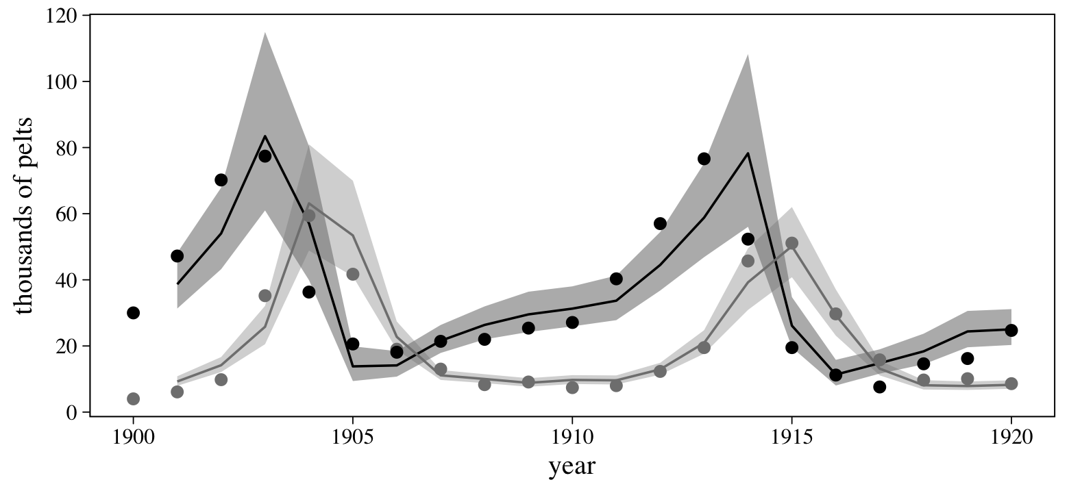scale_y_continuous("thousands of hare pelts", breaks = 0:6 * 20, limits = c(0, 120))