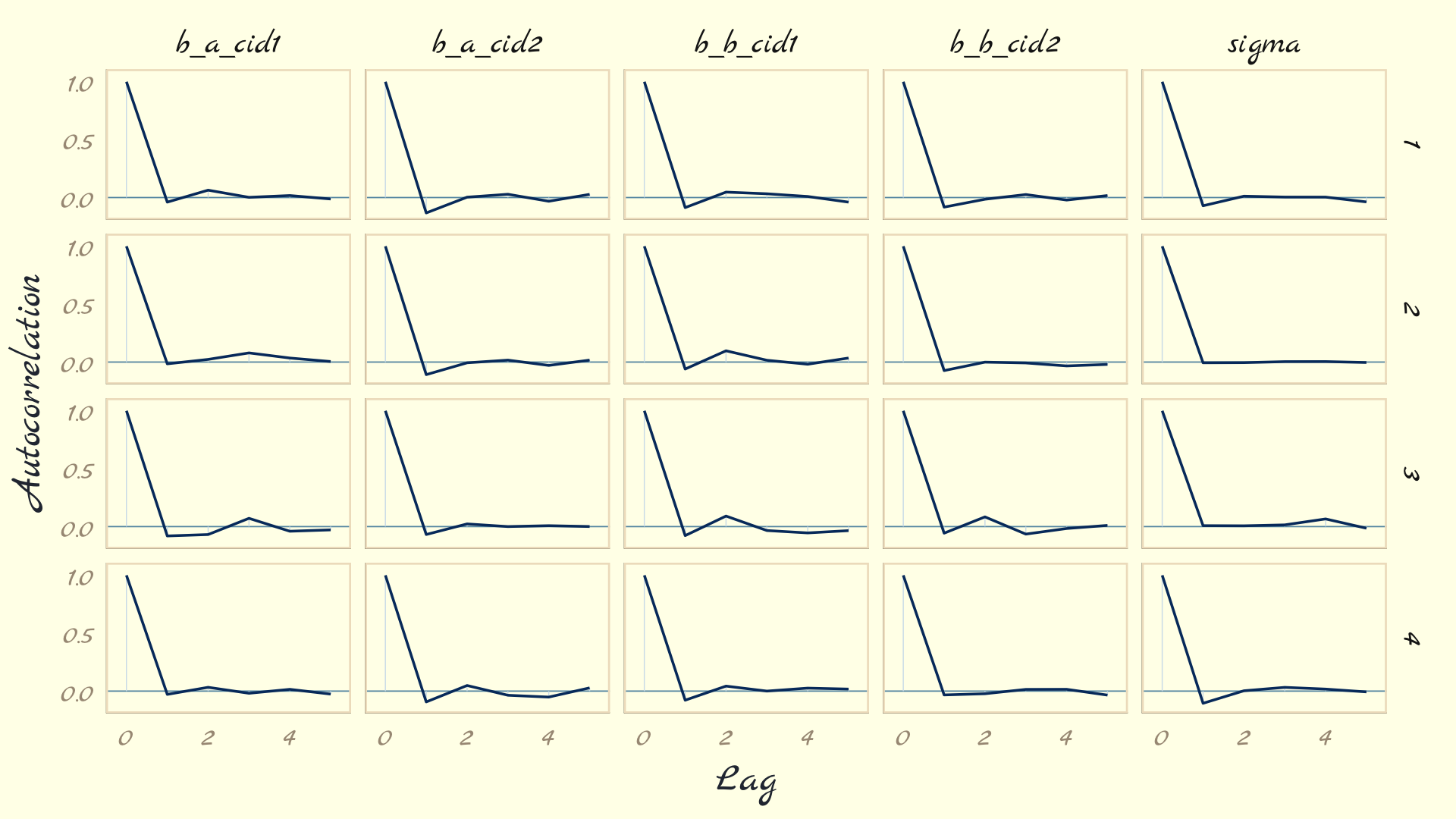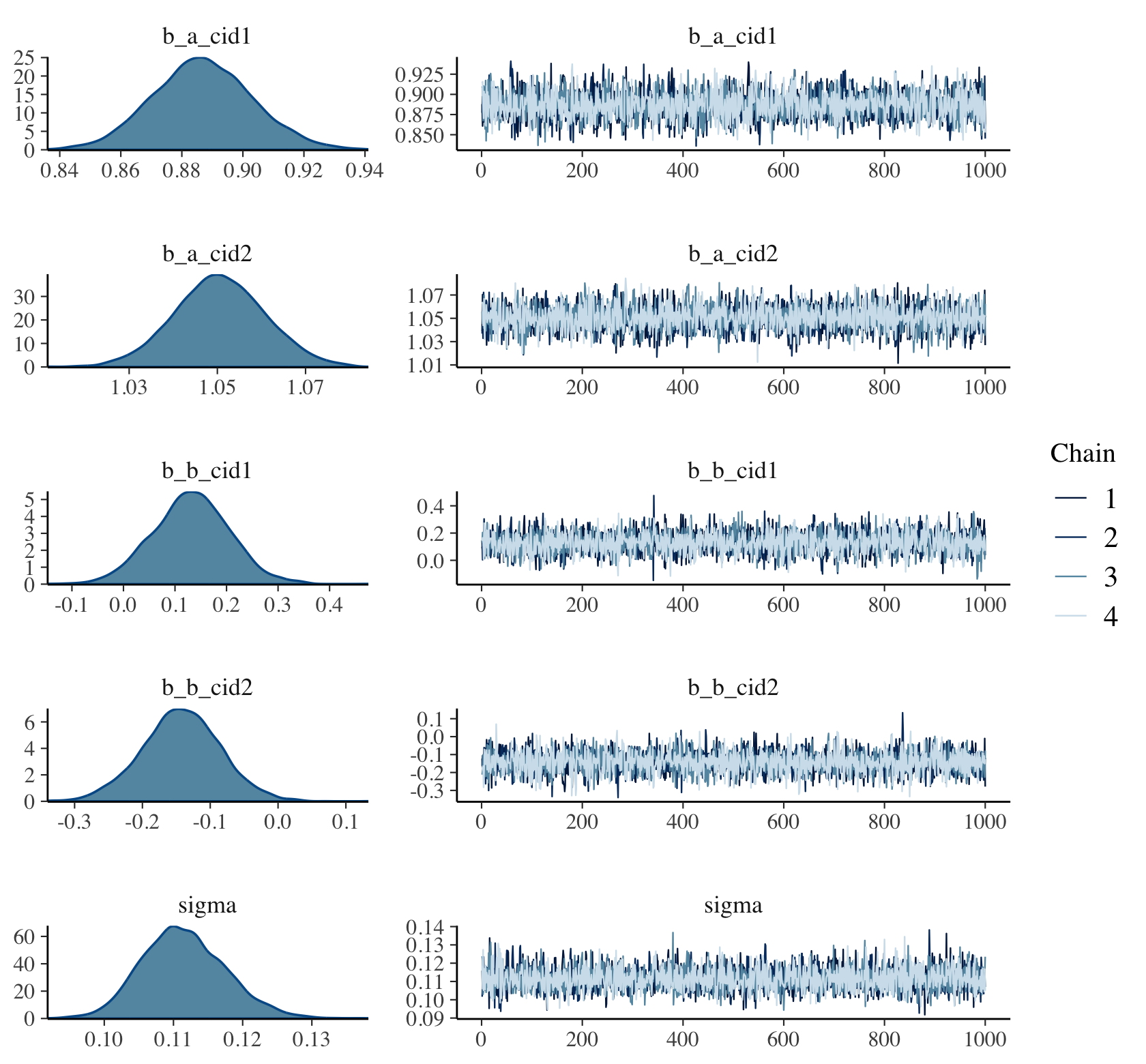 print(b9.4)## Warning: Parts of the model have not converged (some Rhats are > 1.05). Be careful when analysing