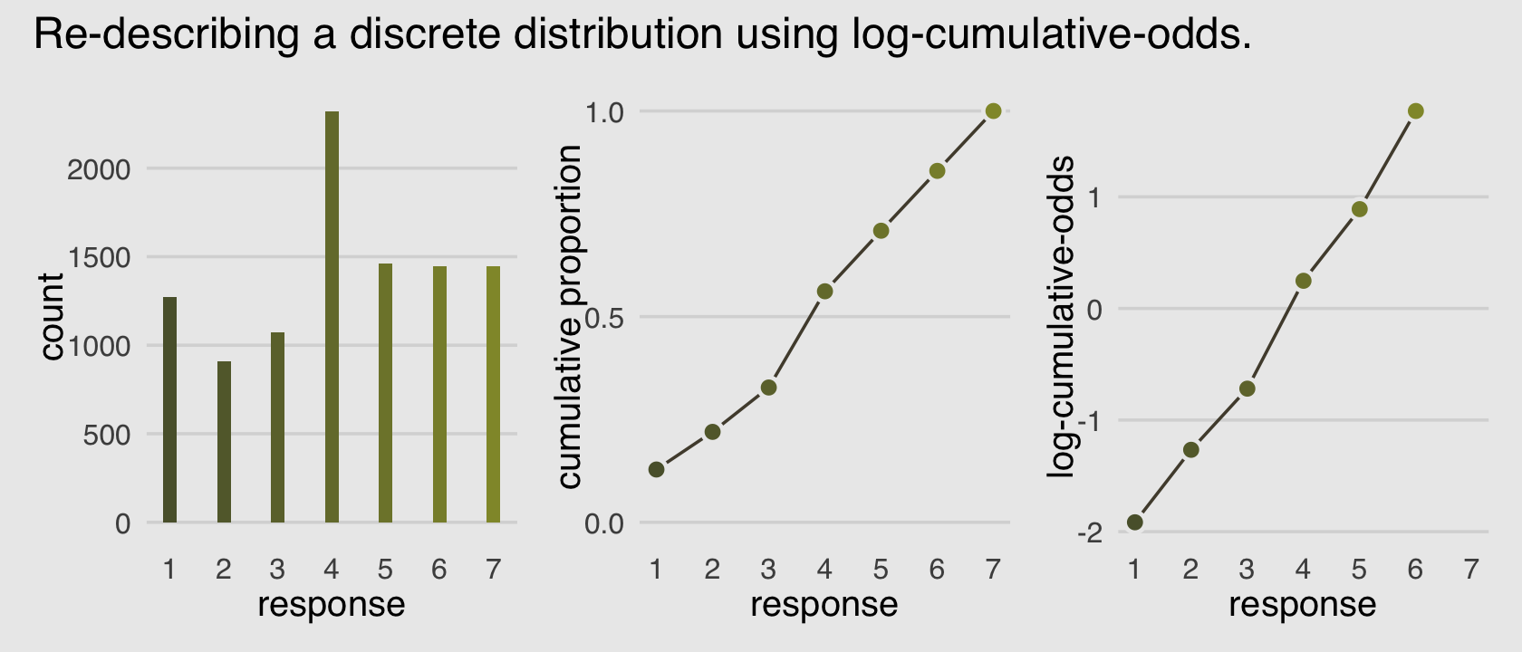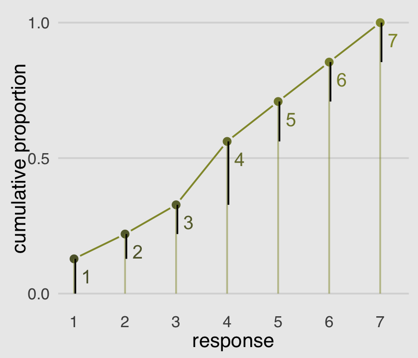 “This chapter introduced several new types of regression, all of which are generalizations of generalized linear models (GLMs)” (p. 397). This chapter has been a ride. If you’d like more practice with the negative-binomial model and some of the others models for categorical data we covered in this chapter and in Chapter 11, Alan Agresti covered them extensively in his (2015) text, Foundations of linear and generalized linear models. For more on different kinds of zero-inflated count models, check out Atkins et al. (2013), A tutorial on count regression and zero-altered count models for longitudinal substance use data. If you’d like to learn more about using cumulative probabilities to model ordinal data in brms, check out Bürkner and Vuorre’s (2019) Ordinal regression models in psychology: A tutorial and its repository on the Open Science Framework (https://osf.io/cu8jv/). Also check out Chapter 23 of my (2023a) ebook Doing Bayesian Data Analysis in brms and the tidyverse were we model ordinal data with a series of cumulative probit models.