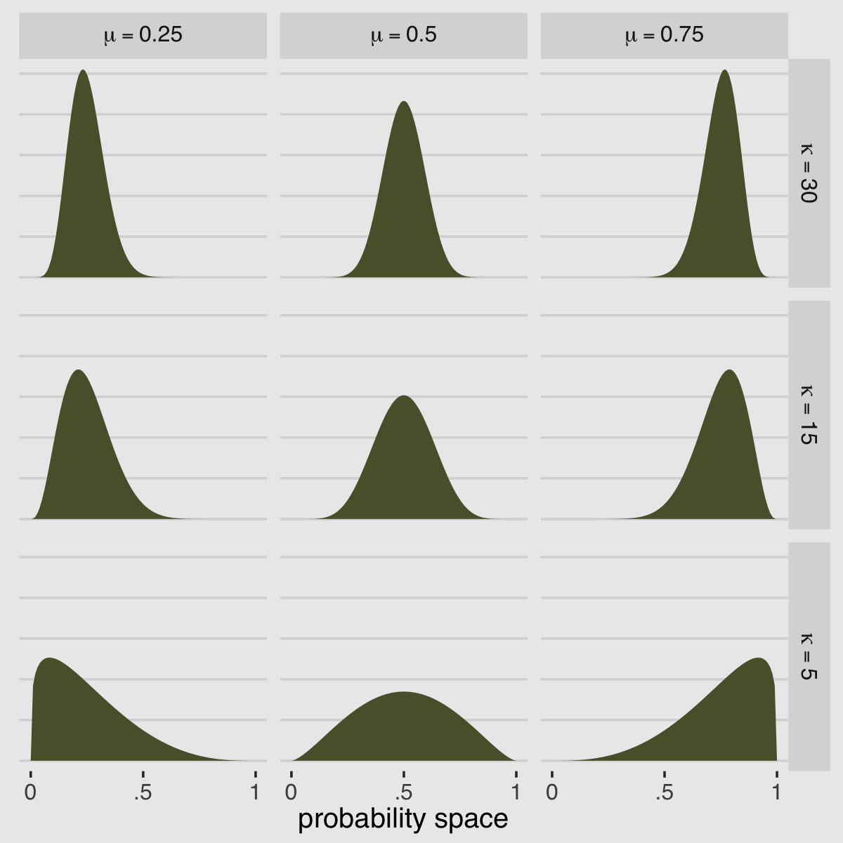 subtitle = expression("Defined in terms of "*mu*" (i.e., pbar) and "*kappa*" (i.e., theta)"))