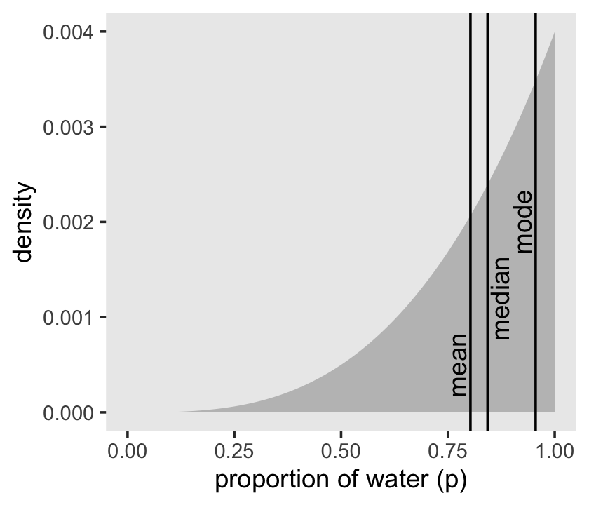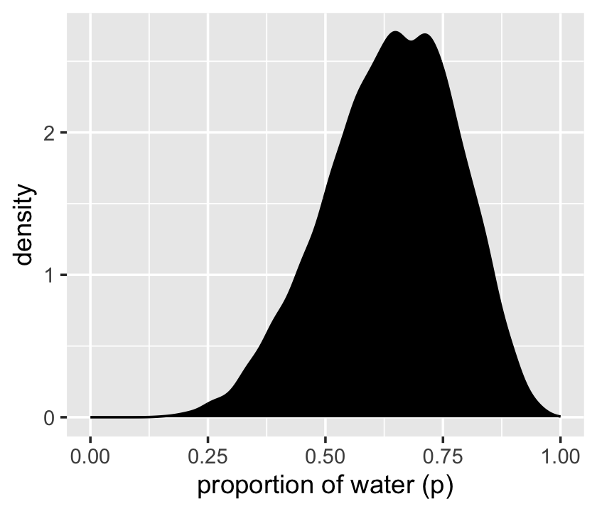scale_x_continuous("proportion of water (p)", limits = c(0, 1))