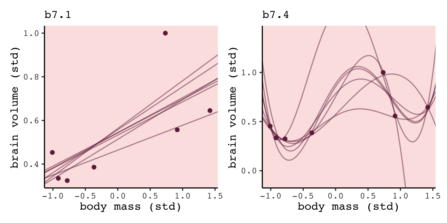 - underfitting, “which leads to poor prediction by learning too little from the data” (McElreath, 2020a, p. 192, emphasis added)