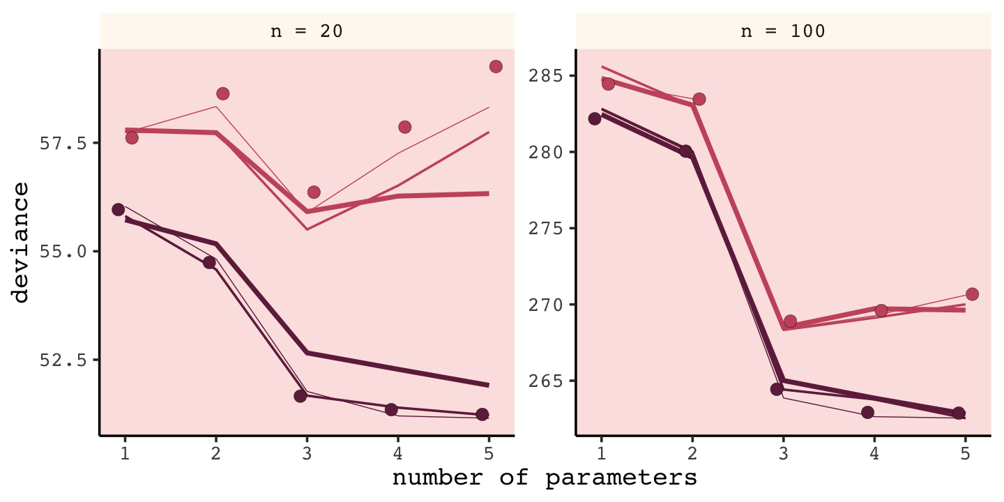 Whatever you think about null hypothesis significance testing in general, using it to select among structurally different models is a mistake–\(p\)-values are not designed to help you navigate between underfitting and overfitting. (p. 193, emphasis in the original).