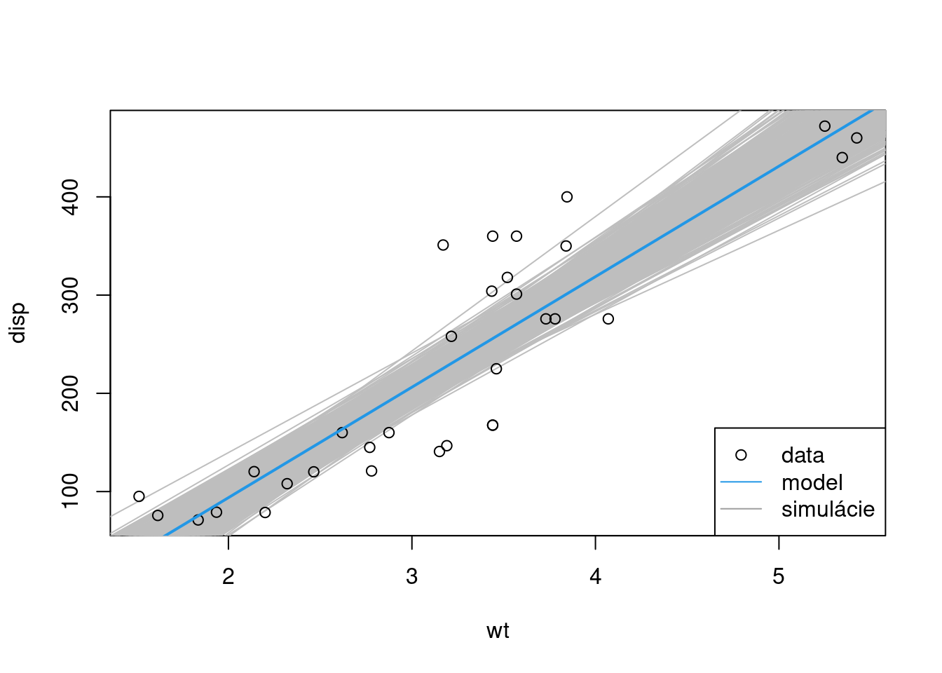 ## 6 18.1 6 225 105 2.76 3.46 20.2 1 0 3 1Databázové systémy však majú zmysel práve vtedy, keď náš súbor údajov je priveľký na to, aby sa zmestil do voľnej pamäte RAM (alebo je práca s ním pomalá), teda keď zaberá miesto rádovo v jednotkách, desiatkach či stovkách GB. Taký súbor je potom potrebné dostať do databázy buď po častiach, alebo priamo z textového CSV súboru uloženom na pevnom disku. Ukážeme si druhý spôsob, treba však súbor pripraviť/upraviť tak, aby desatinné miesta v numerických hodnotách oddeľoval znak . (bodka, nie čiarka), a počet prvkov v hlavičkovom riadku zodpovedal počtom prvkov v ostatných riadkoch. Funkcia DBI::dbWriteTable automaticky určí správny formát jednotlivých polí, no umožňuje ho zadať aj manuálne.