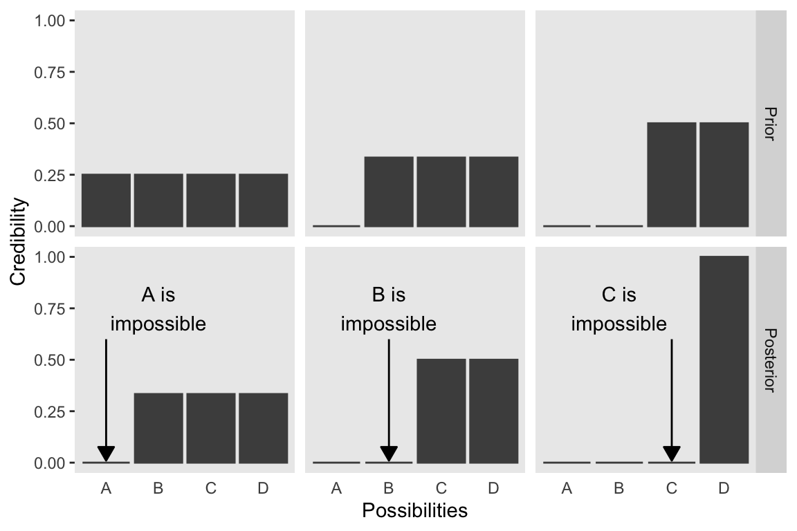 2.1 Bayesian inference is reallocation of credibility across possibilities