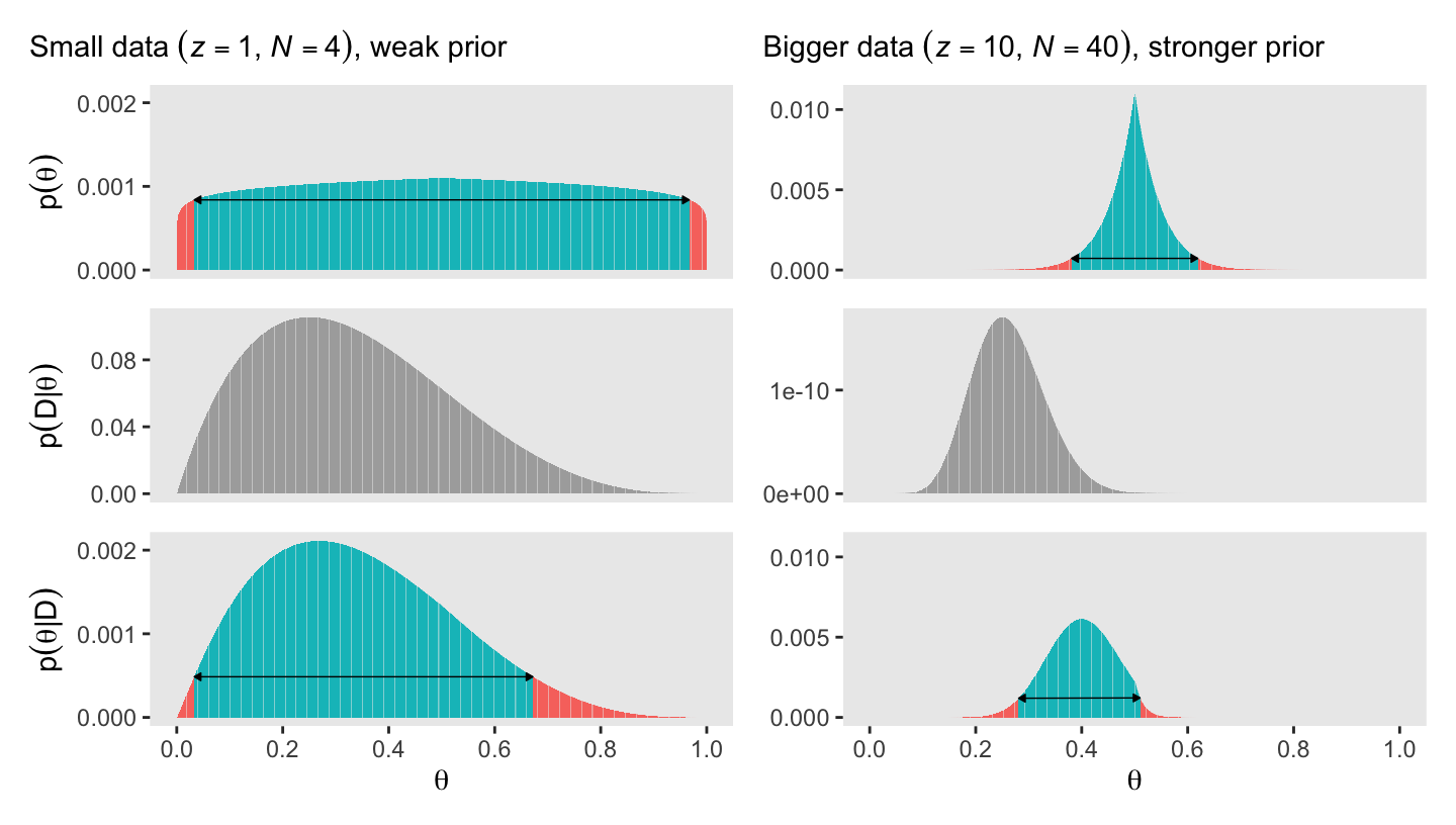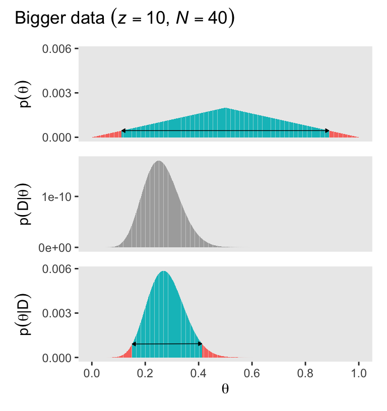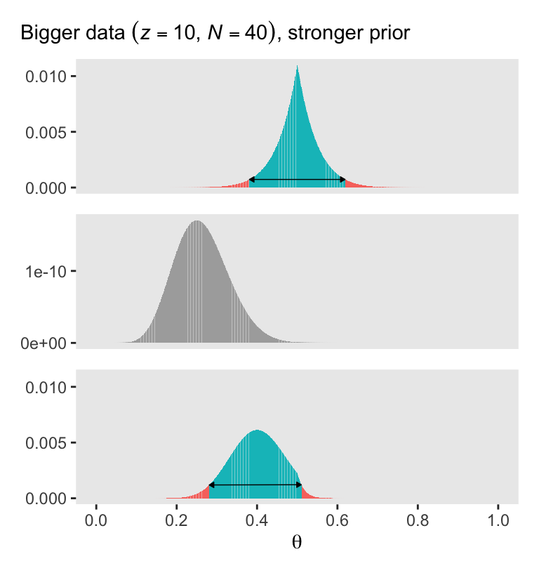 labs(subtitle = expression("Bigger data "*({italic(z)==10}*", "*italic(N)==40)*", stronger prior")) +