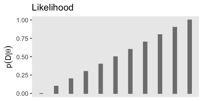 In terms of Bayes’ rule from the previous section, we can denote the likelihood \(p(D \mid \theta)\).