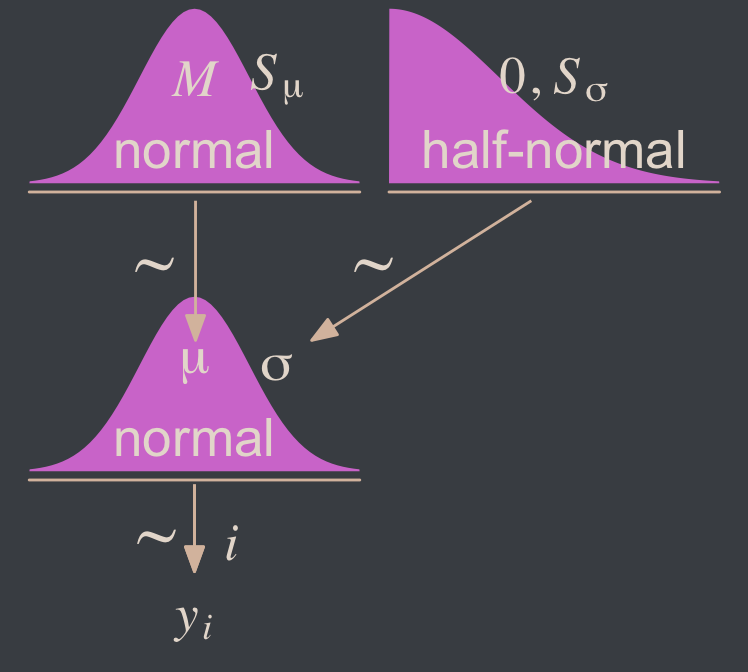\[p(y \mid \mu, \sigma) = \frac{1}{\sigma \sqrt{2 \pi}} \exp \left (-\frac{1}{2} \frac{(y - \mu)^2}{\sigma^2} \right ),\]