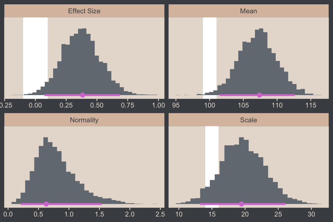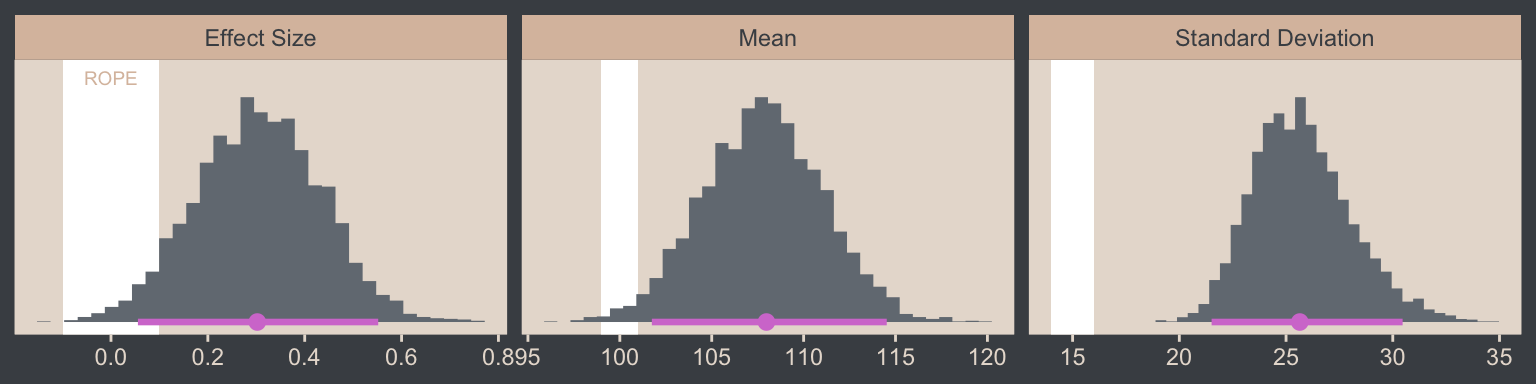 But anyway, in addition to the difference distributions from Figure 16.12, we might also use the brms::hypothesis() function to do something of a Bayesian \(t\)-test.