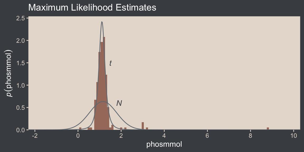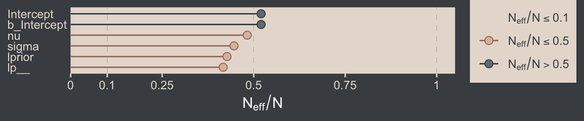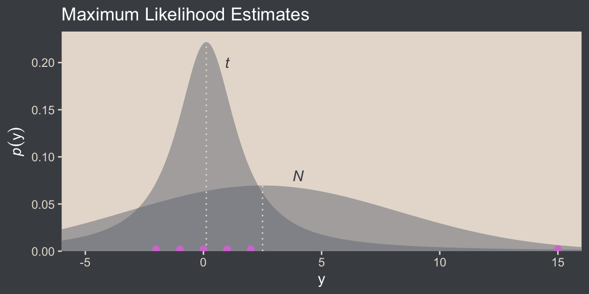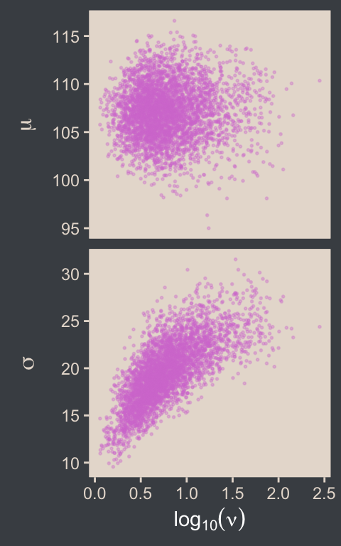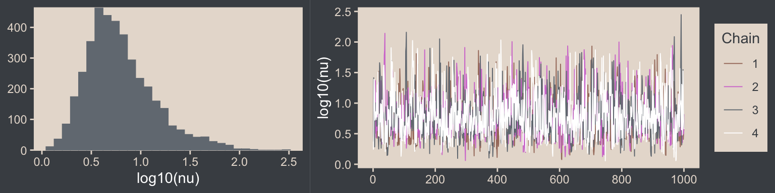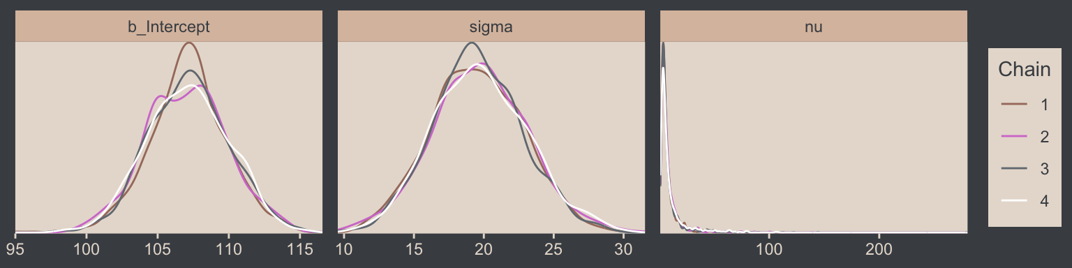 We’ll have more practice with the robust Student’s \(t\) in some of the following chapters. But if you’d like even more, you might check out my blog post on the topic, Robust linear regression with Student’s \(t\)-distribution, and the companion post, Bayesian robust correlations with brms (and why you should love Student’s \(t\)).