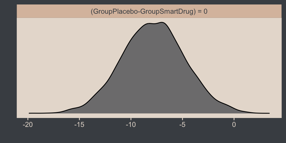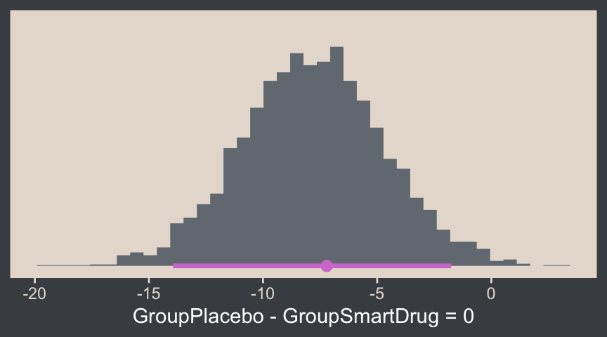hypothesis(fit16.3, "GroupPlacebo - GroupSmartDrug = 0") |>