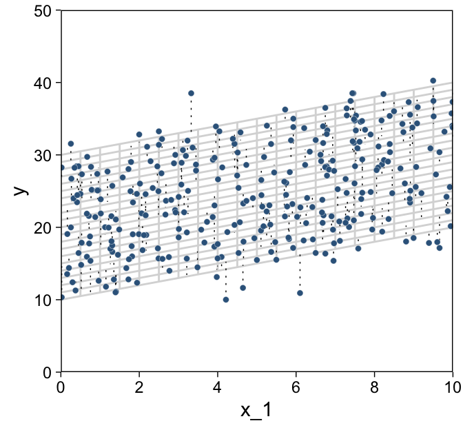 mutate(y = 10 + 1 * x_1 + 2 * x_2)