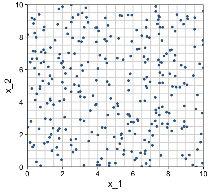 d <- tibble(x_1 = runif(n = n, min = 0, max = 10),