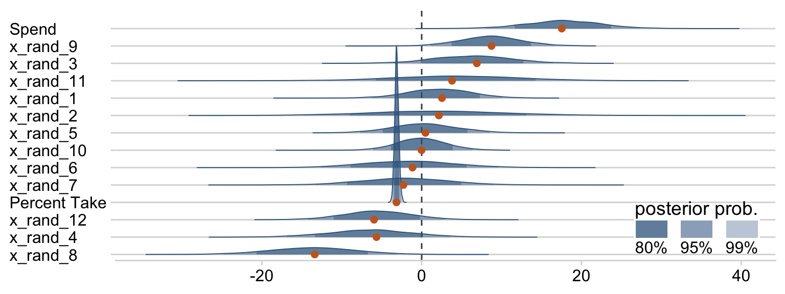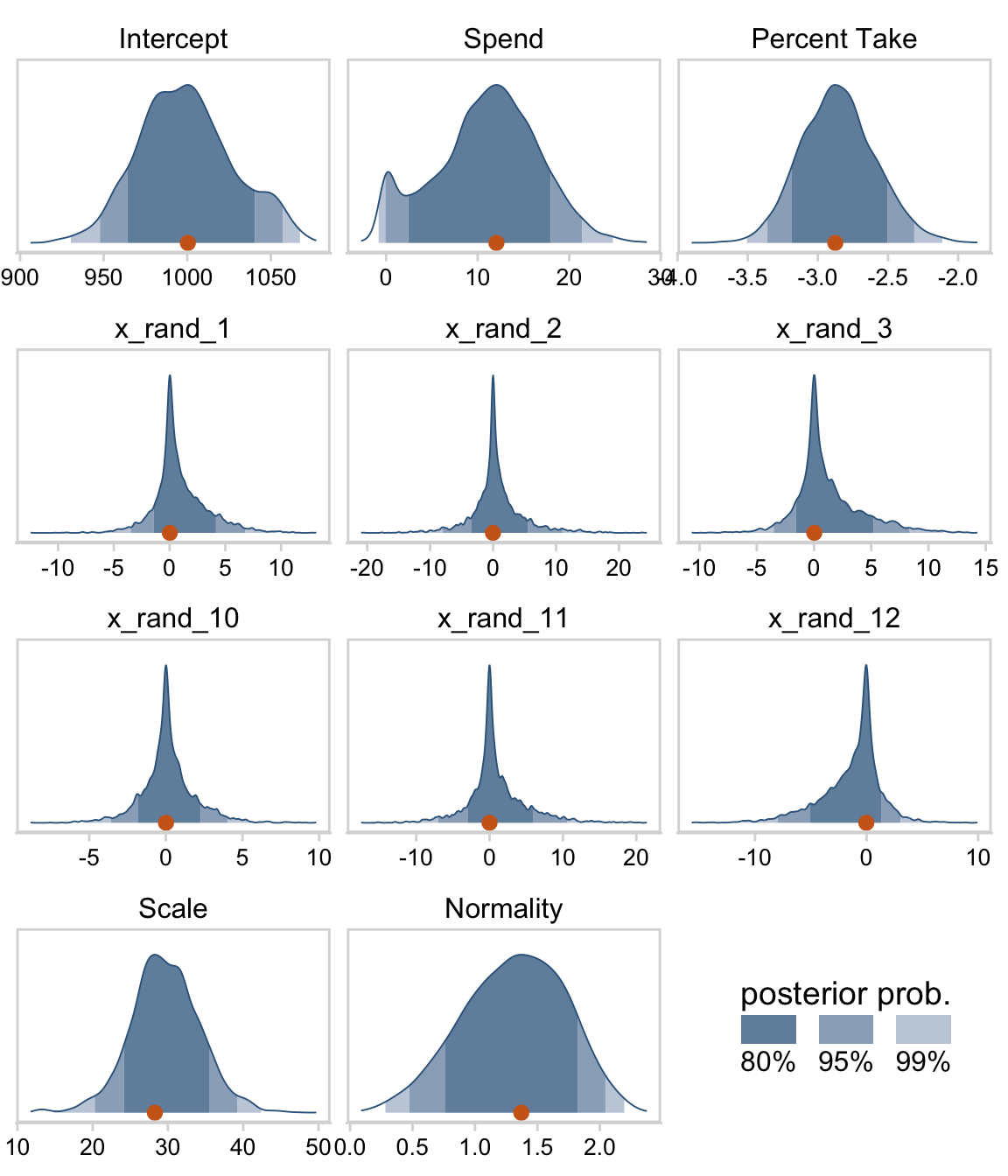 To conclude this section regarding variable selection, it is appropriate to recapitulate the considerations at the beginning of the section. Variable selection is a reasonable approach only if it is genuinely plausible and meaningful that candidate predictors have zero relation to the predicted variable. The results can be surprisingly sensitive to the seemingly innocuous choice of prior for the regression coefficients, and, of course, the prior for the inclusion probability. Because of these limitations, hierarchical shrinkage priors may be a more meaningful approach. (p. 548)