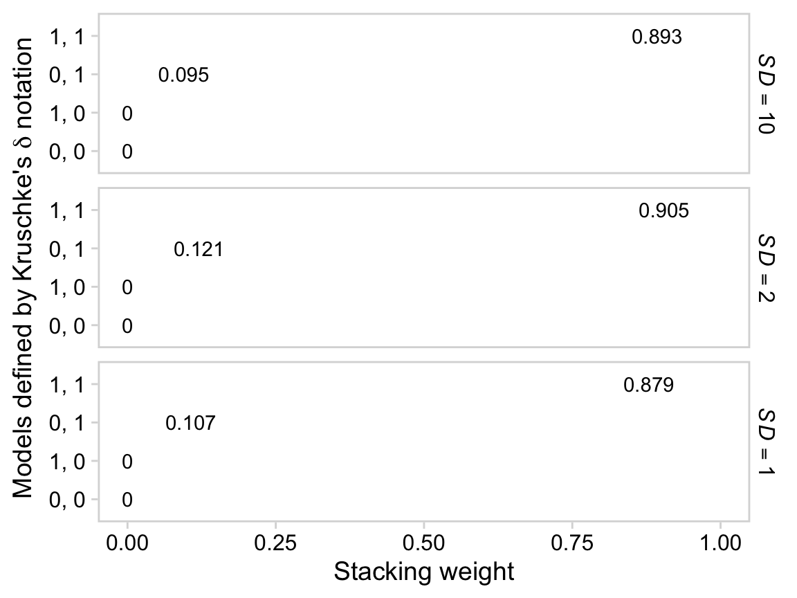 In his Corrigenda, Kruschke further clarified: “that is true only in case there is a single predictor, not for multiple predictors. The statement could have said that ‘R^2 is algebraically constrained to fall between −1 and +1 in least-squares regression’. More relevantly, replace the statement with the following: ‘In multiple linear regression, standardized regression coefficients tend to fall between -2 and +2 unless the predictors are very strongly correlated and have strongly opposing effects. If your data have strongly correlated predictors, consider widening the prior.’”↩︎