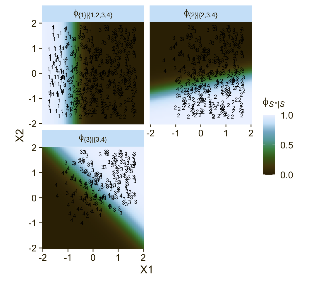 \[\begin{align*} \phi_{S^* \mid S} = \operatorname{logistic}(\lambda_{S^* \mid S}) \\ \lambda_{S^* \mid S} = \beta_{0, S^* \mid S} + \beta_{1, {S^* \mid S}} x, \end{align*}\]