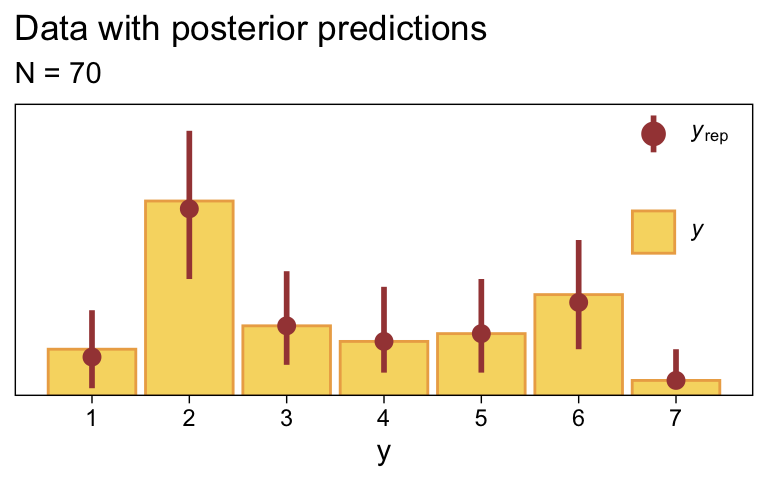 In this section, Kruschke mentioned extensions of this class of models might include using the cumulative \(t\) function to handle outliers or adding a guessing parameter. Full disclosure: I have not fit models like these. Based on my knowledge of brms, I suspect they’re possible. For insights how, you might review Bürkner’s (2022b) Define custom response distributions with brms and his (2022c) Estimating non-linear models with brms vignettes.