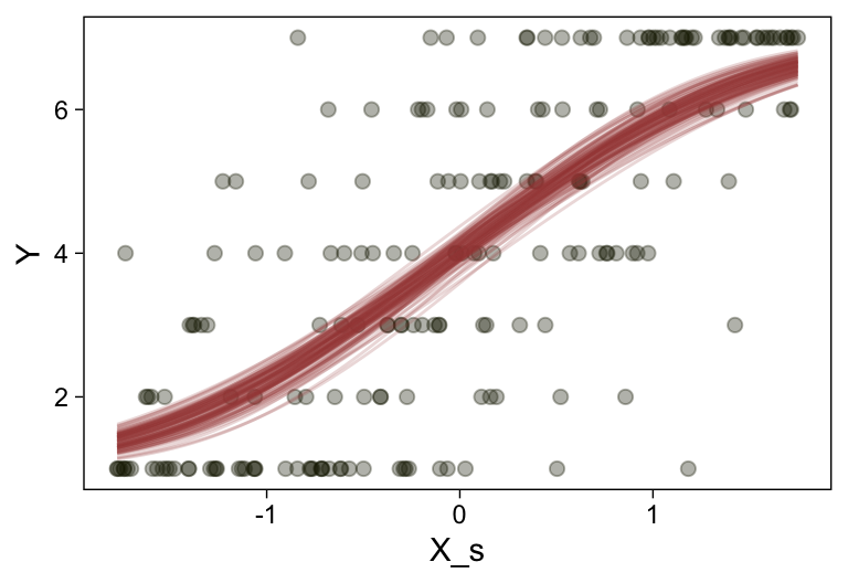 In addition, there are other likelihoods one might use to model ordinal data using brms. Your first stop should be Bürkner and Vourre’s (2019) Ordinal regression models in psychology: A Tutorial, where, in addition to the cumulative normal model, they cover the sequential and adjacent category models. You might also check out Chapter 11 of my (2023) ebook recoding McElreath’s Statistical rethinking, wherein I show how one might use the logit link (i.e., family = cumulative(logit)) to fit ordered-categorical models with brms.