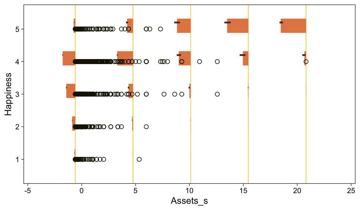 3 p(Happiness = 3 | Assets_s = -1) 0.344 0.330 0.356 0.95 mode hdi