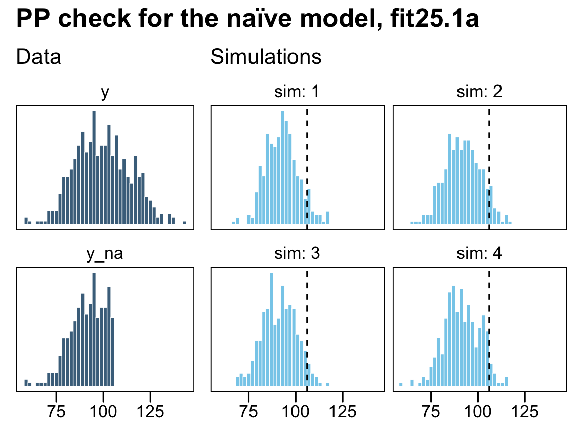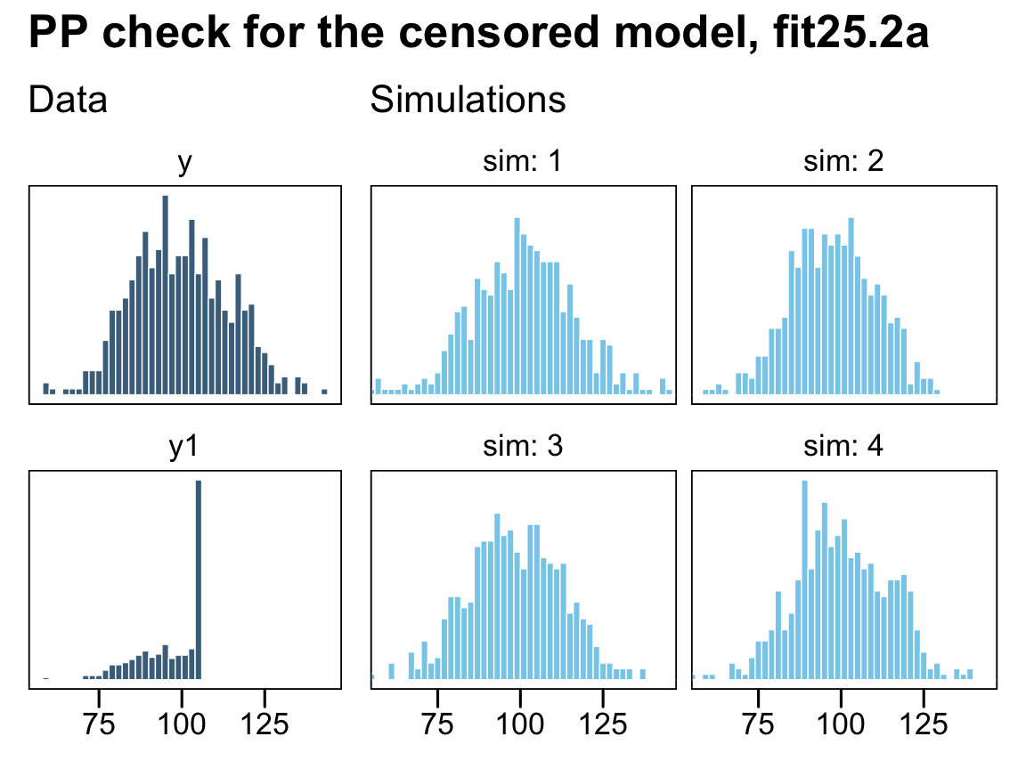 scale_y_continuous(NULL, breaks = NULL)Now extract the posterior draws from our censored model, fit25.2, and repeat the process.