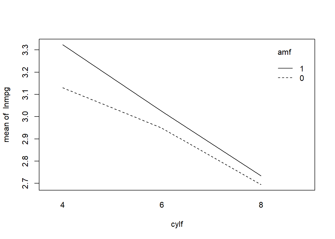 leveneTest(lnmpg,cylf,center=mean)## Levene's Test for Homogeneity of Variance (center = mean)