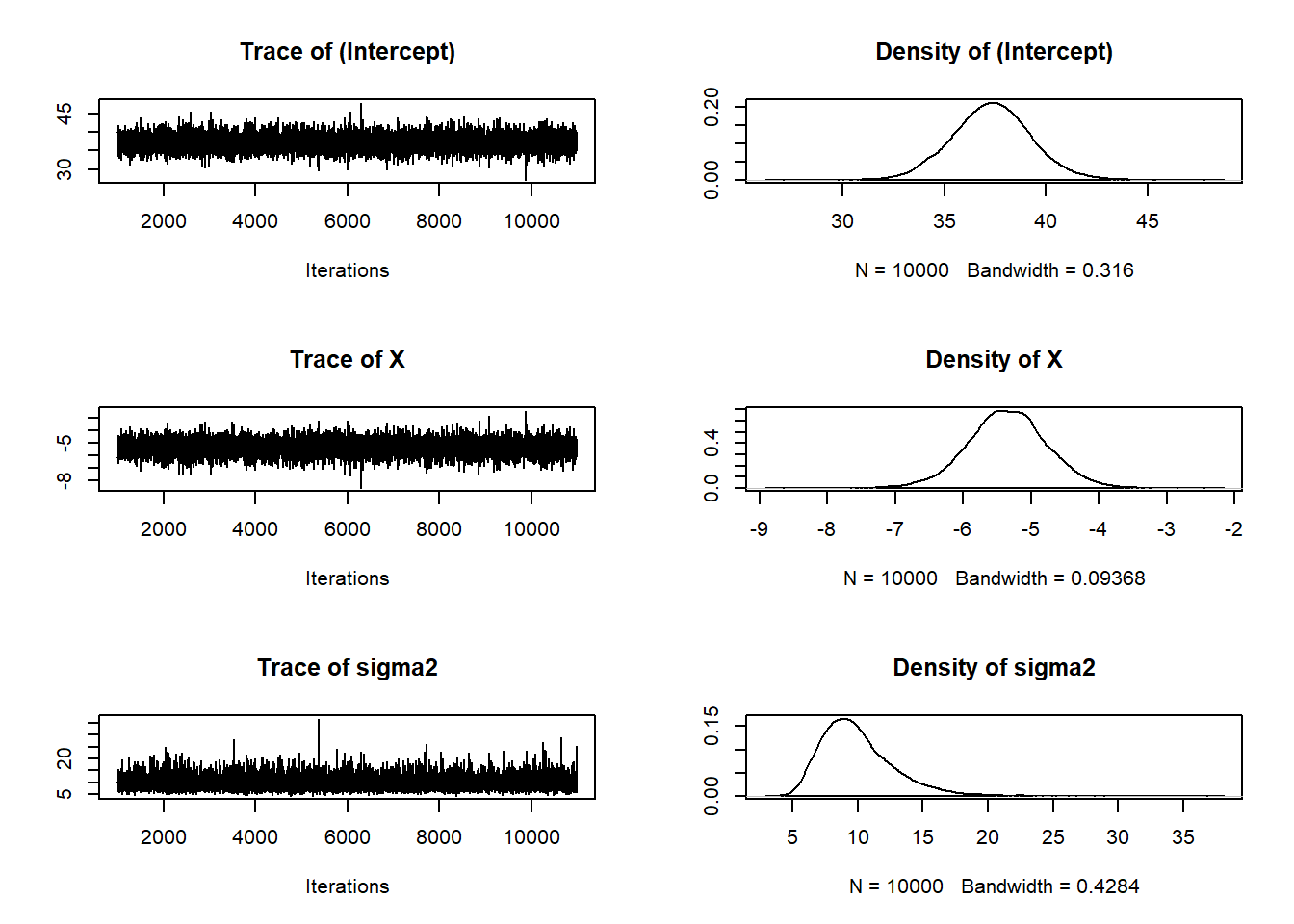 | MCMClogit(formula, data = NULL, burnin = 1000, mcmc = 10000, thin = 1, tune = 1.1, verbose = 0, seed = NA, beta.start = NA, b0 = 0, B0 = 0, user.prior.density = NULL, logfun = TRUE, marginal.likelihood = c(“none”, “Laplace”), …) |