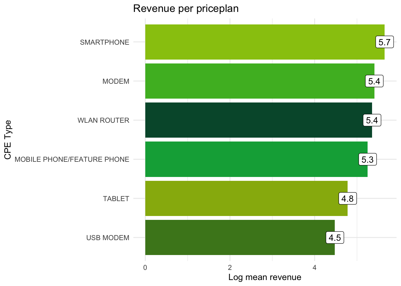 ggplot(aes(x = reorder(cpe_type, log_mean_rev), y = log_mean_rev, fill = cpe_type)) +