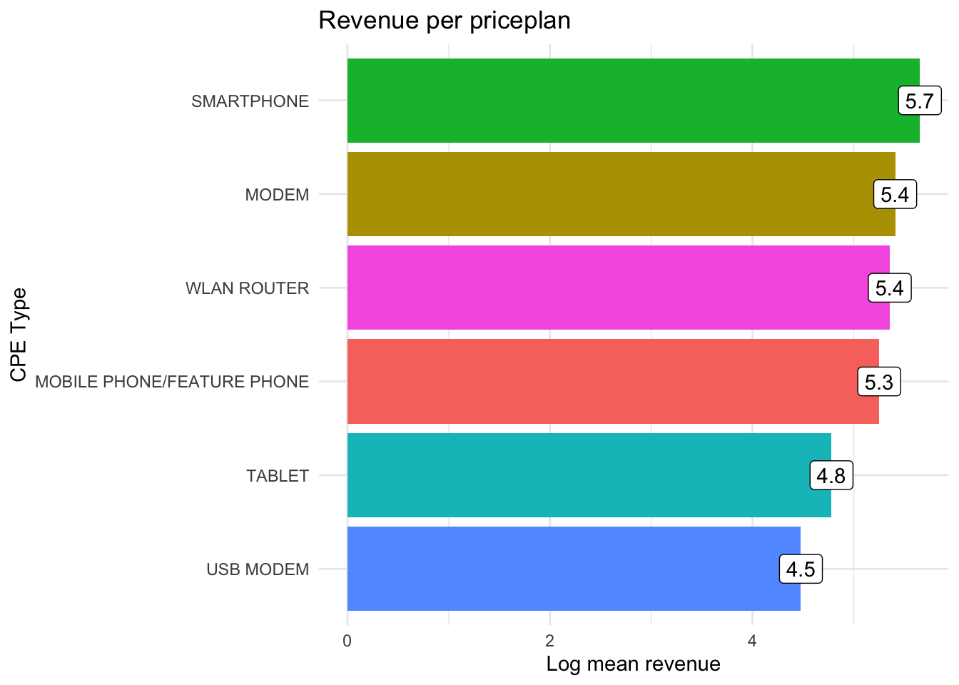 x = "CPE Type", y = "Log mean revenue") +