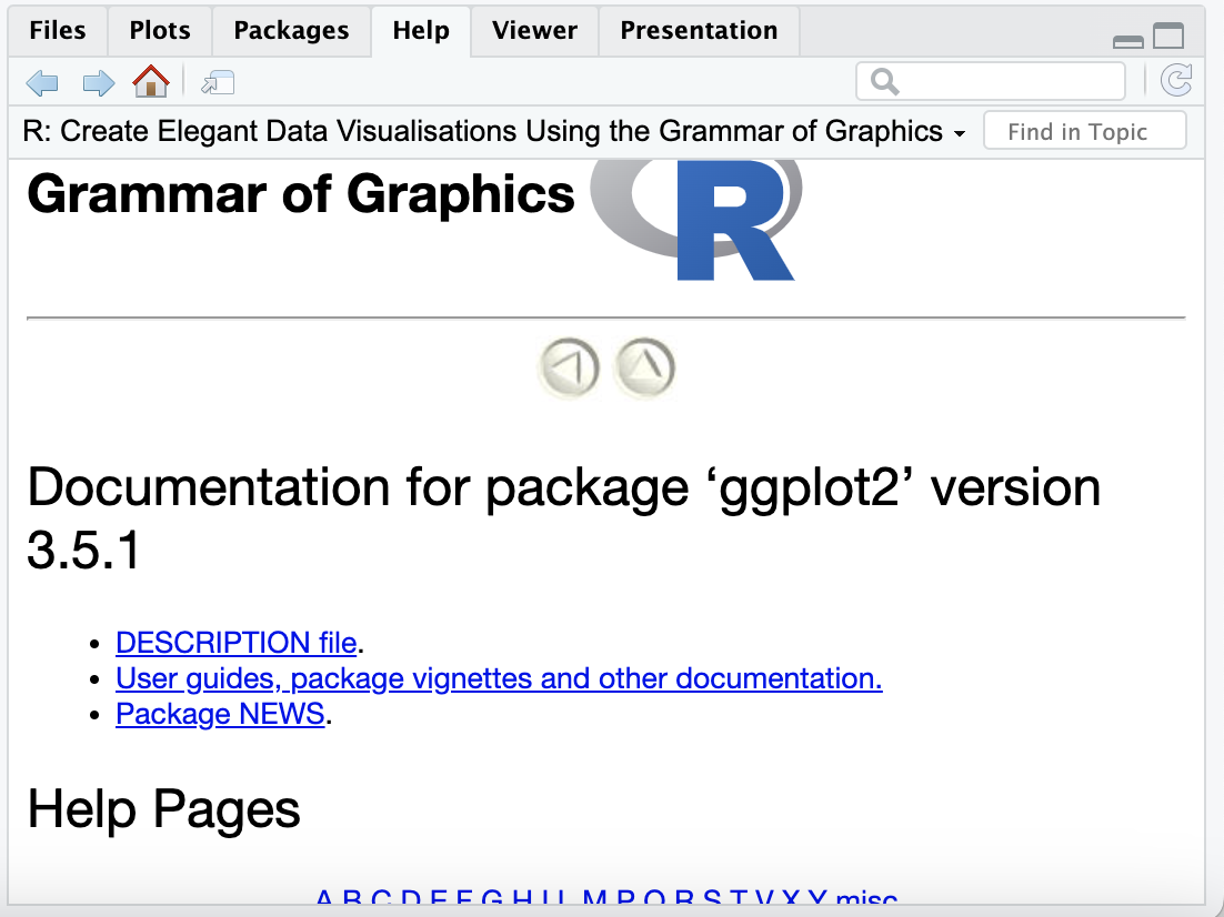 A aba Help traz a documentação de cada pacote, detalhando as funções existentes e como utilizá-las.