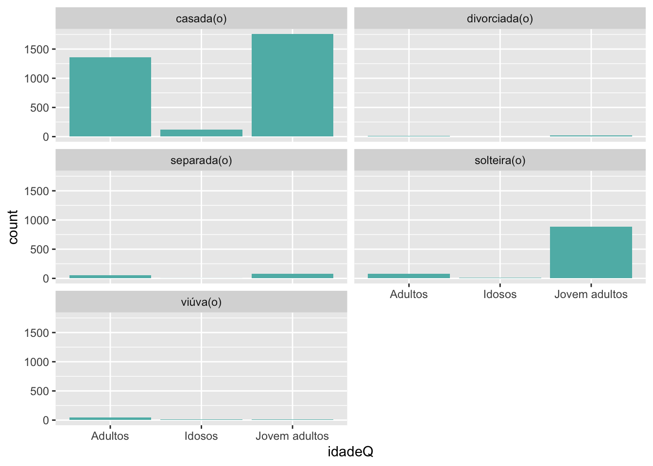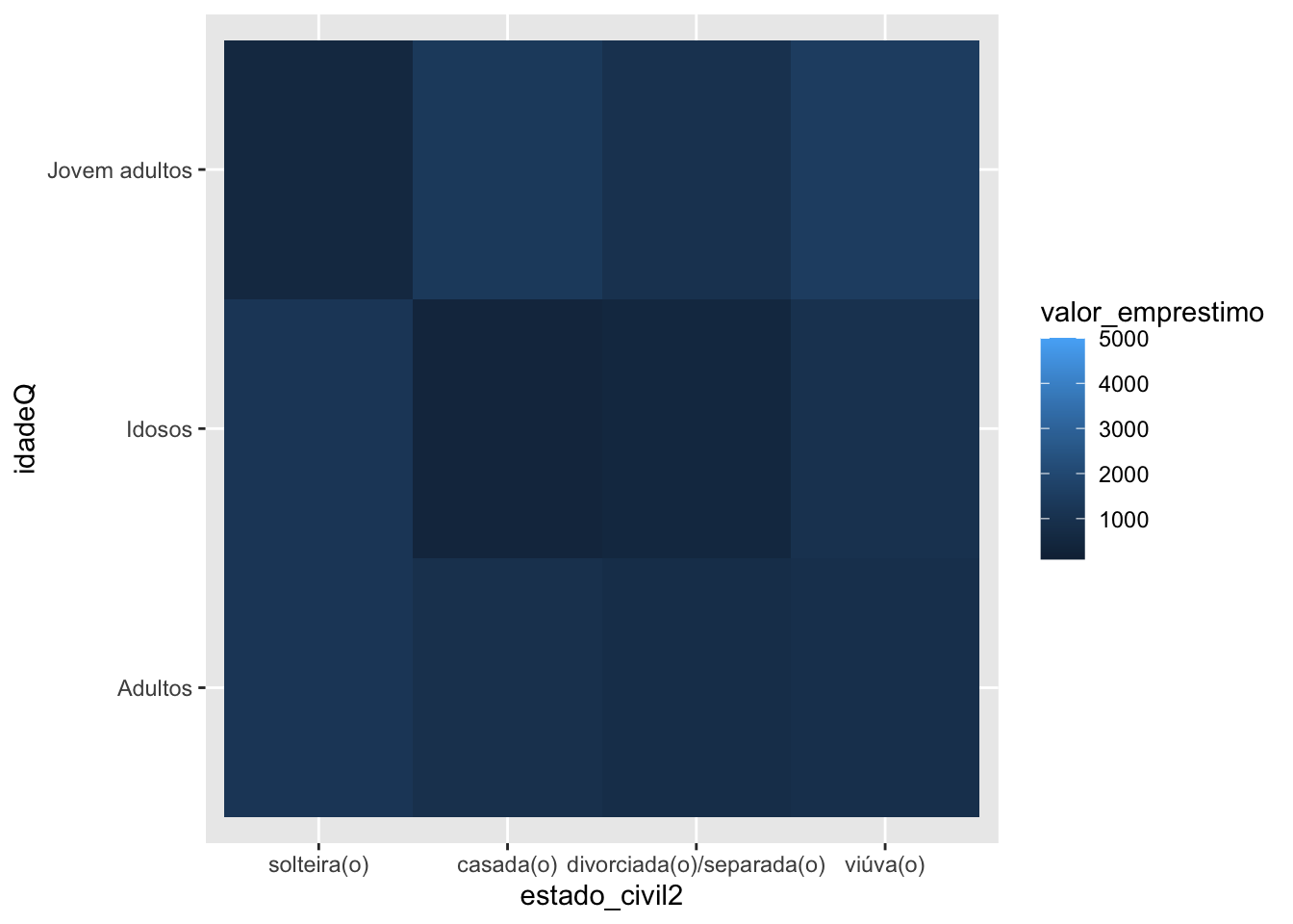 Digamos que queremos cruzar estado civil, idade por grupos e o valor do empréstimo. Teremos a seguinte grafia: