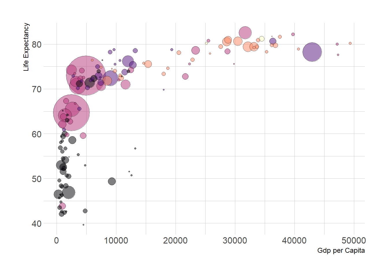 This post follows the previous basic scatterplot with ggplot2. It shows the kind of customization you can apply to circles thanks to the geom_point() options: