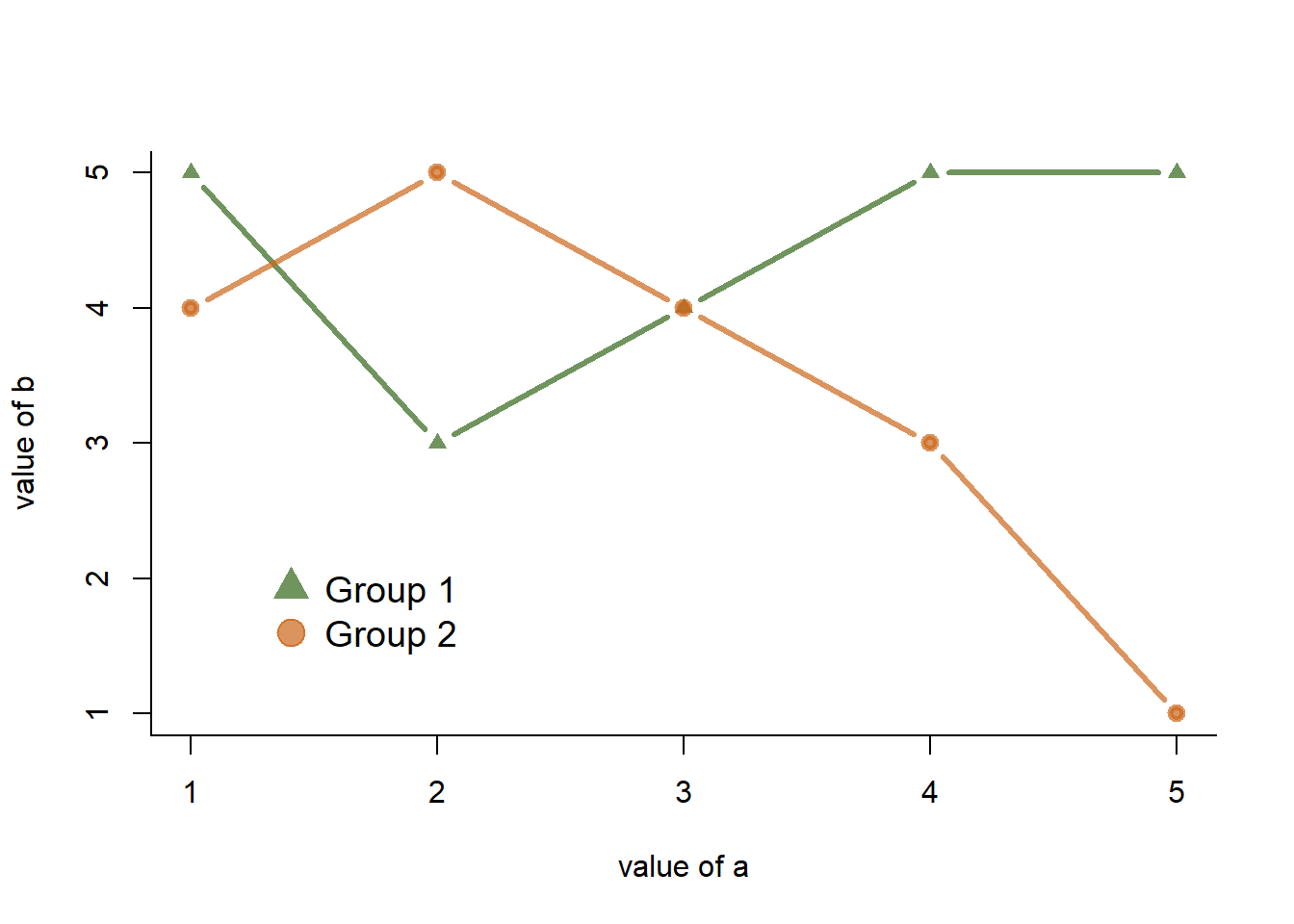 This example demonstrates how to use geom_text() to add text as markers. It works pretty much the same as geom_point(), but add text instead of circles. A few arguments must be provided: