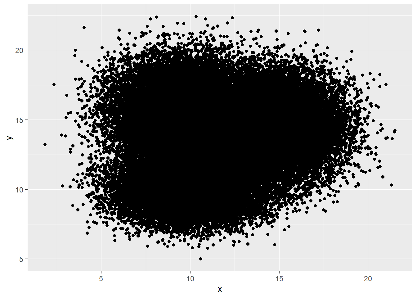a <- data.frame( x=rnorm(20000, 10, 1.9), y=rnorm(20000, 10, 1.2) )
