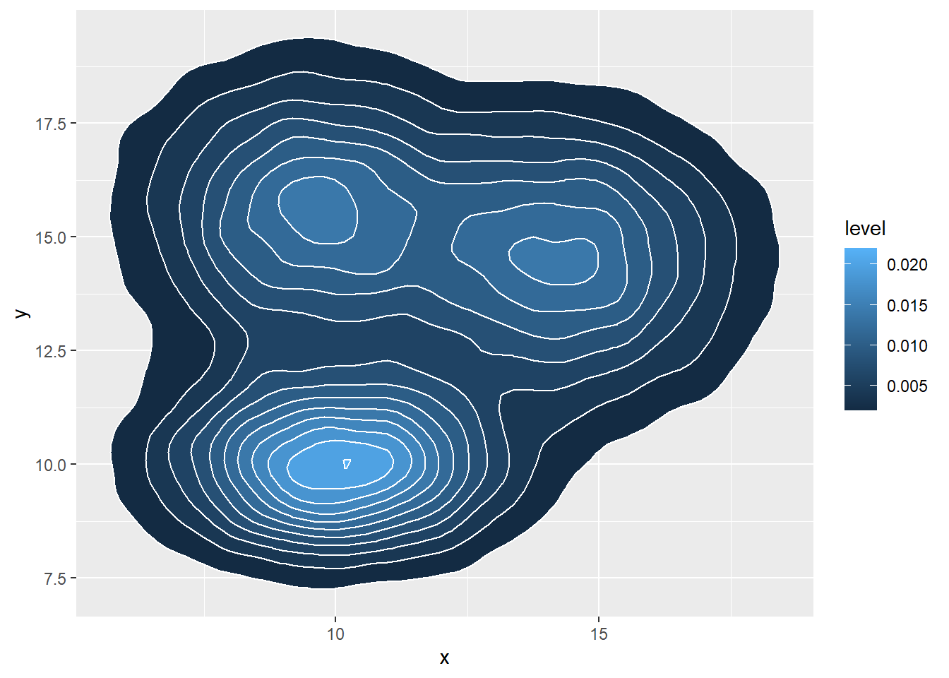 stat_density_2d(aes(fill = ..level..), geom = "polygon", colour="white")