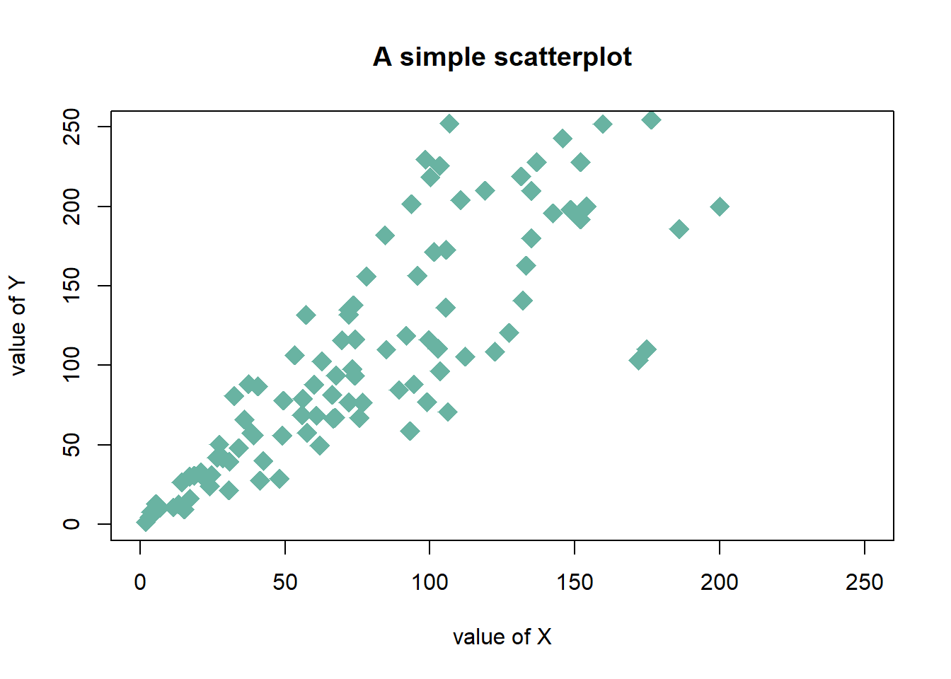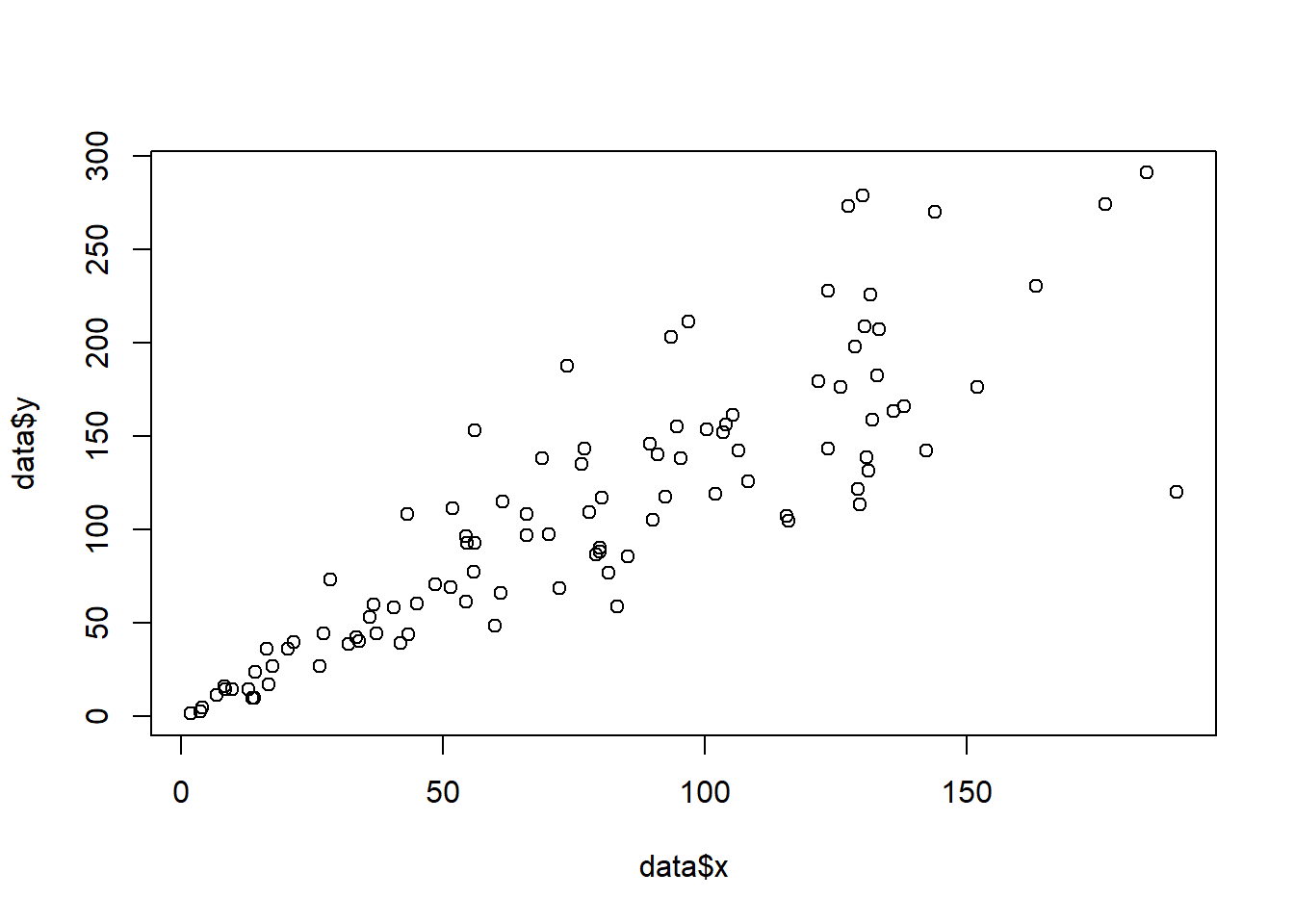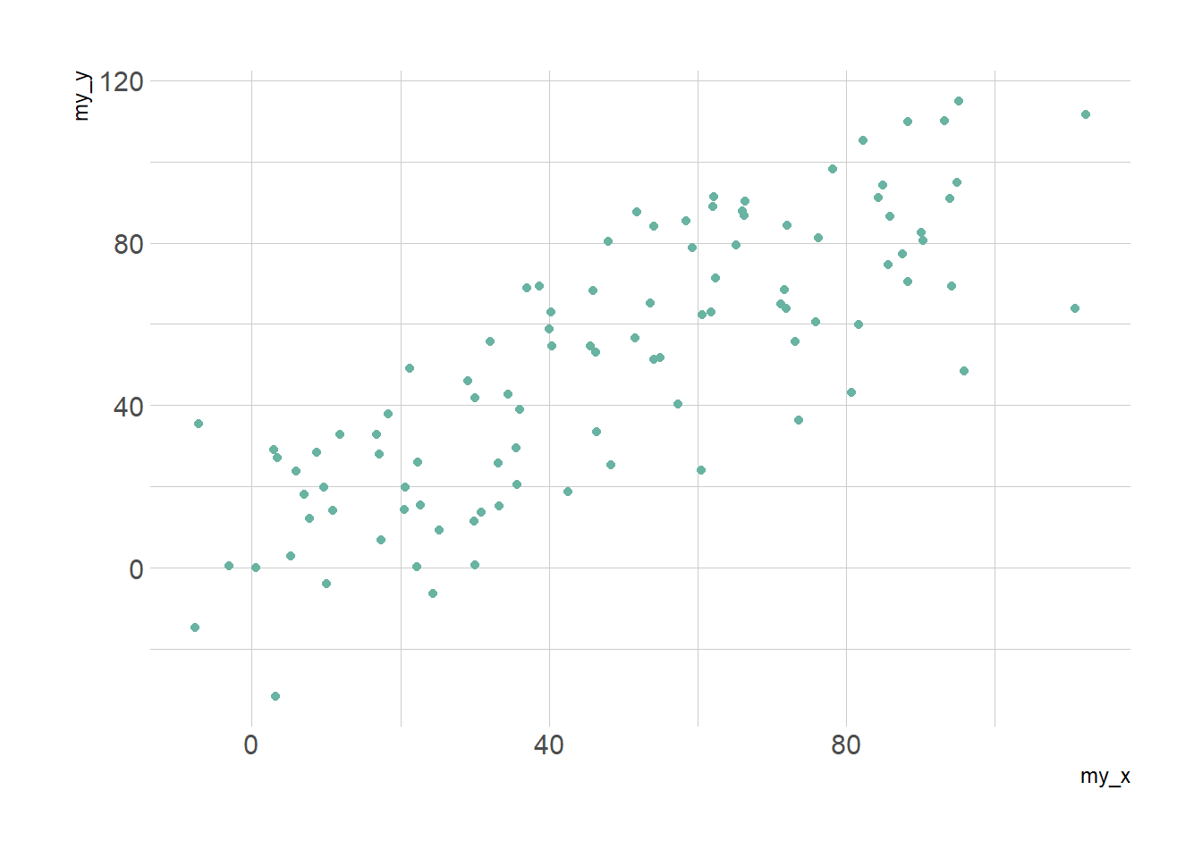 sample_data <- data.frame(x_values = 1:100 + rnorm(100,sd=20), y_values = 1:100 + rnorm(100,sd=27))