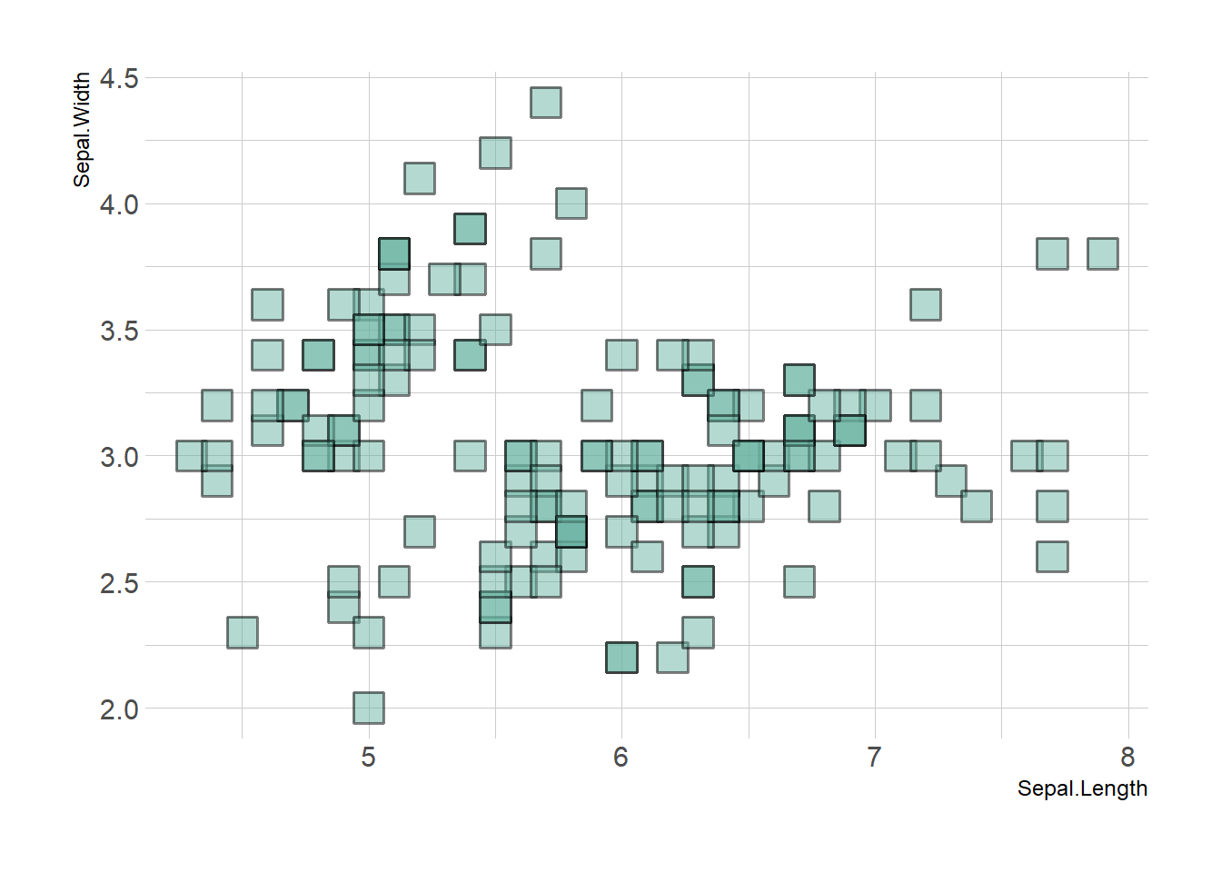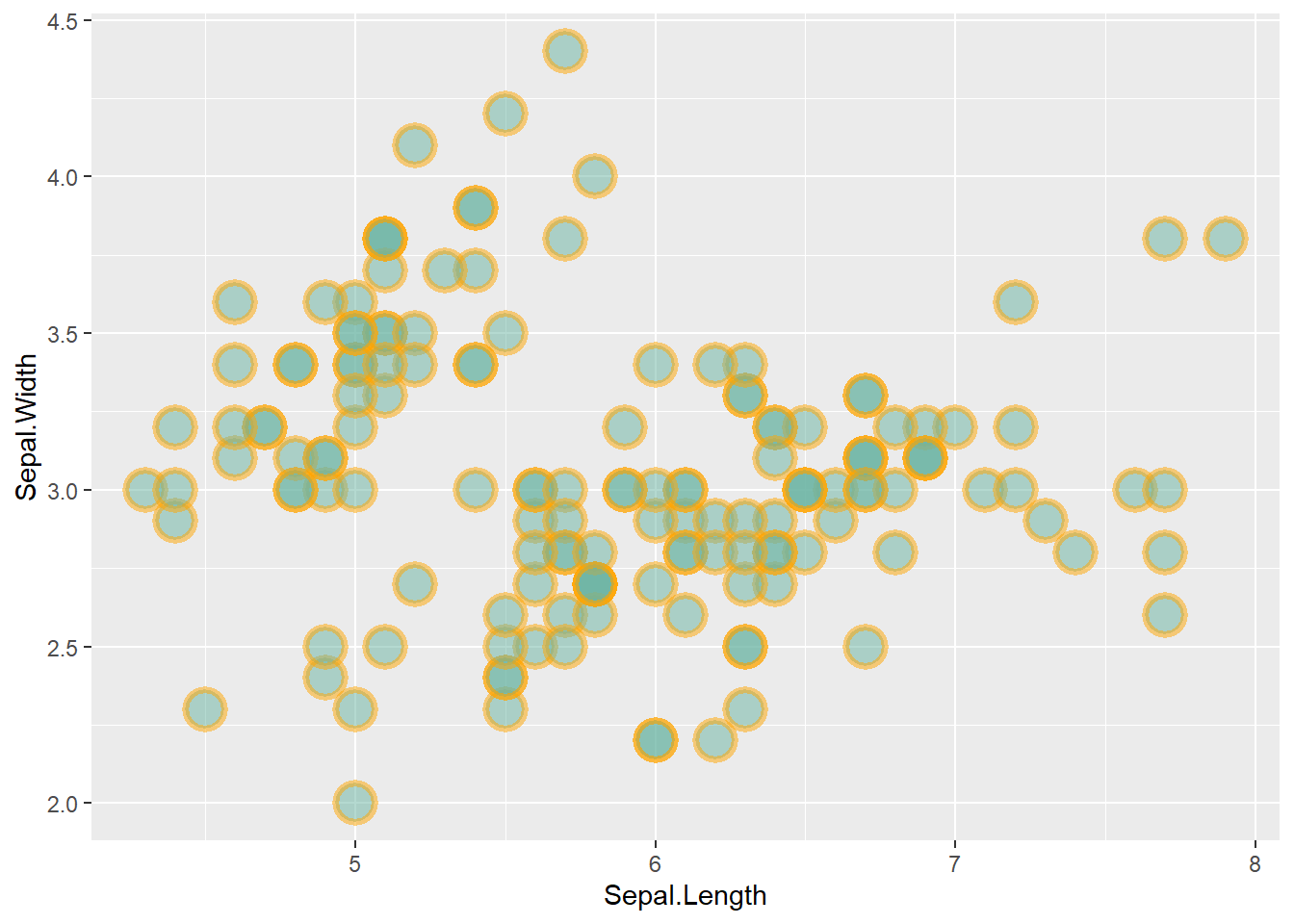 ggplot(iris, aes(x=Sepal.Length, y=Sepal.Width)) +