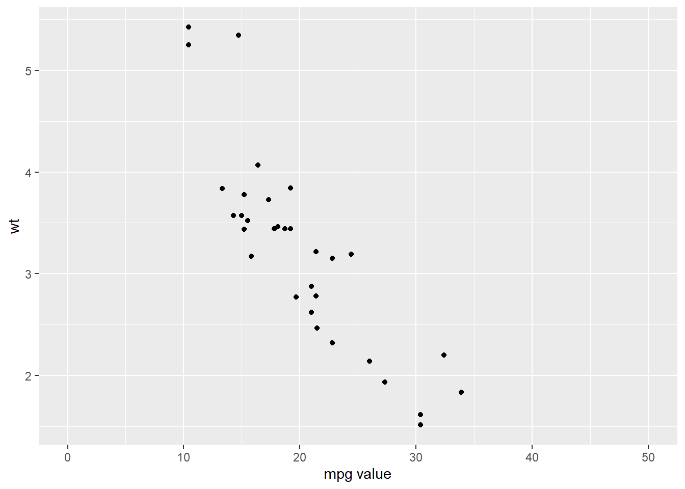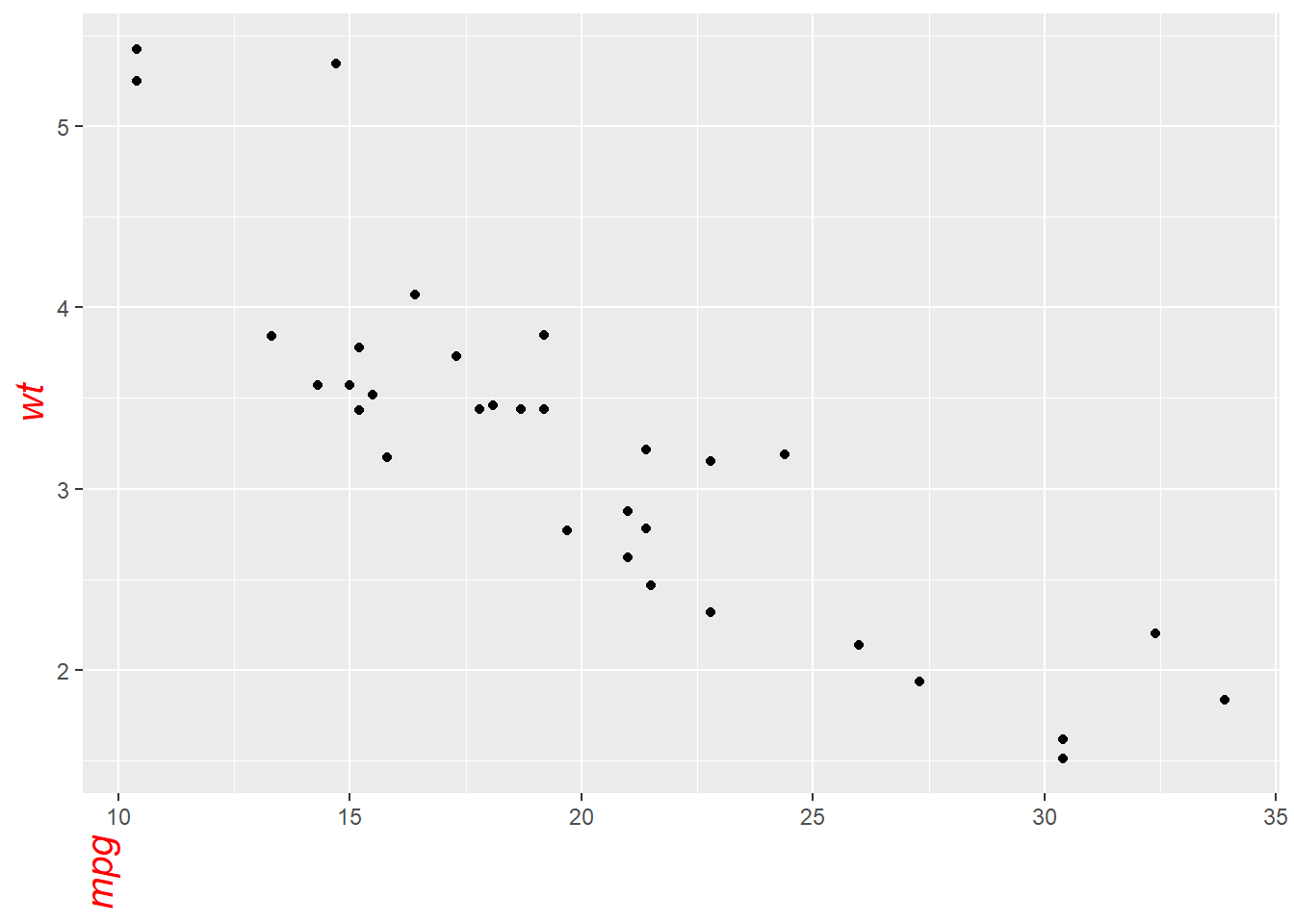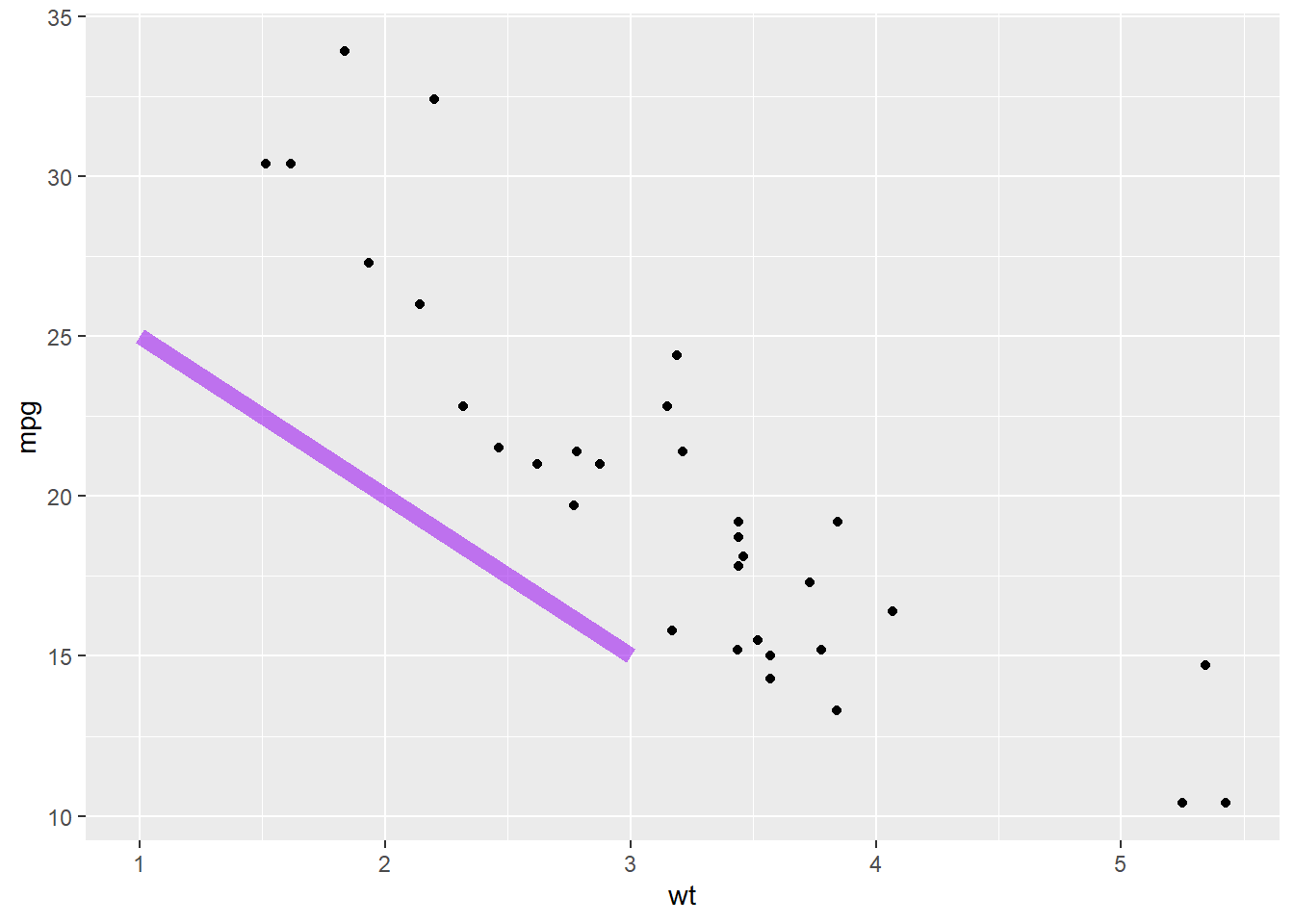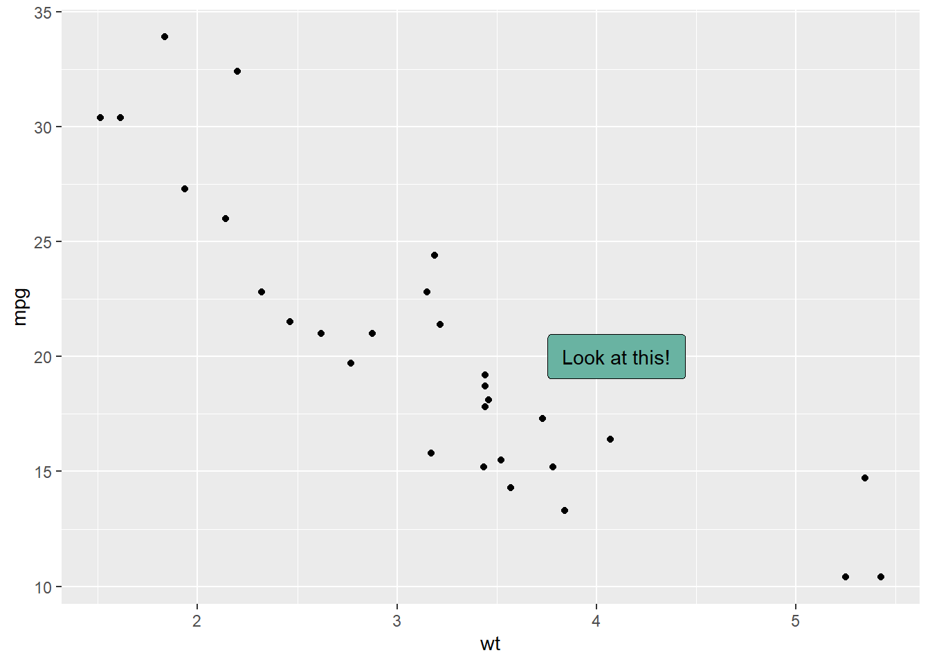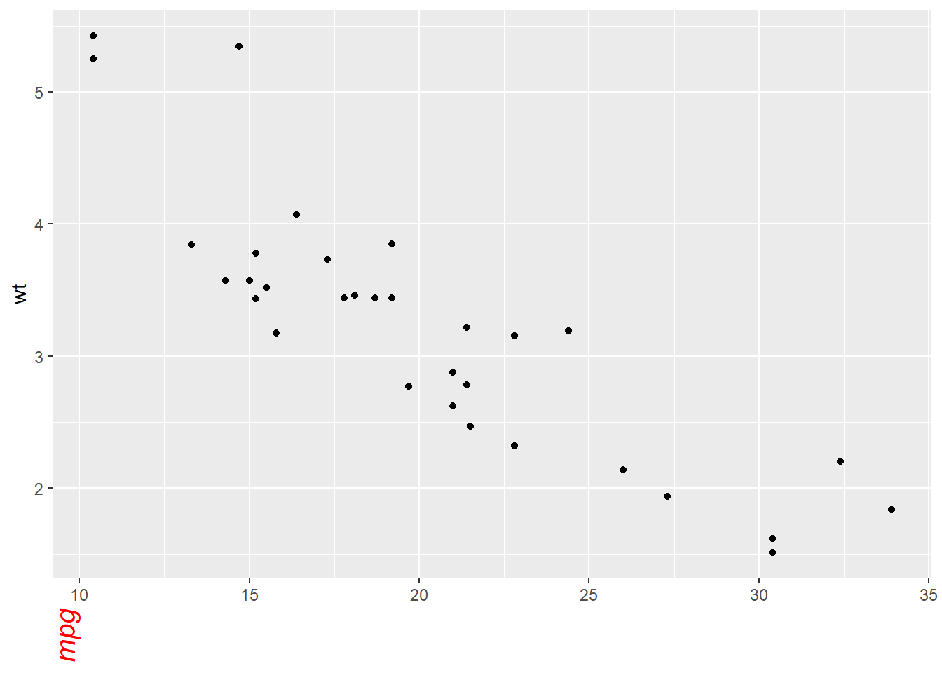p <- ggplot(mtcars, aes(x = wt, y = mpg)) +