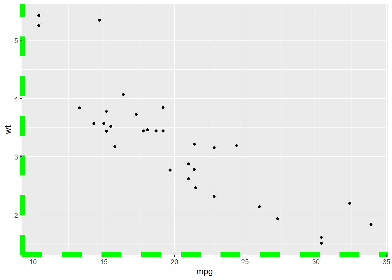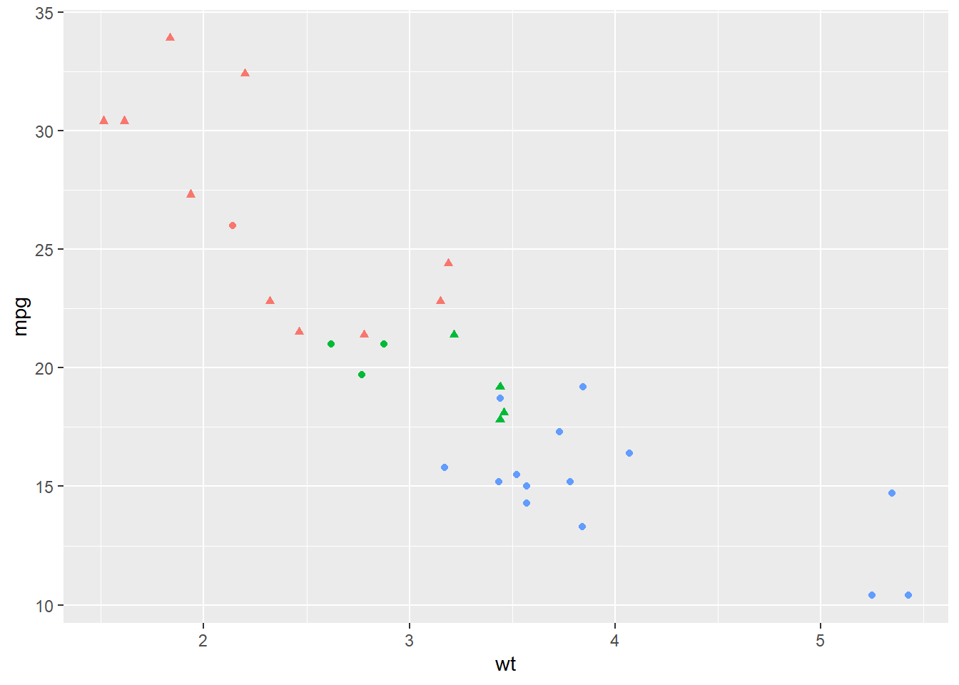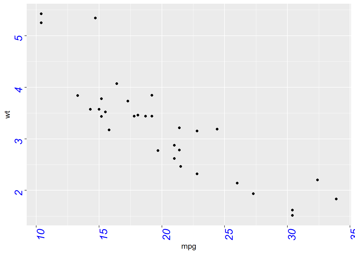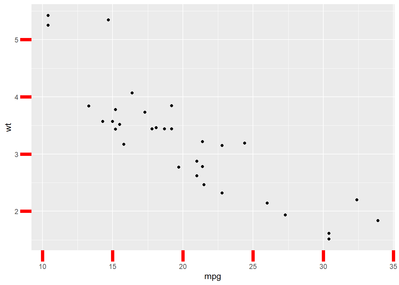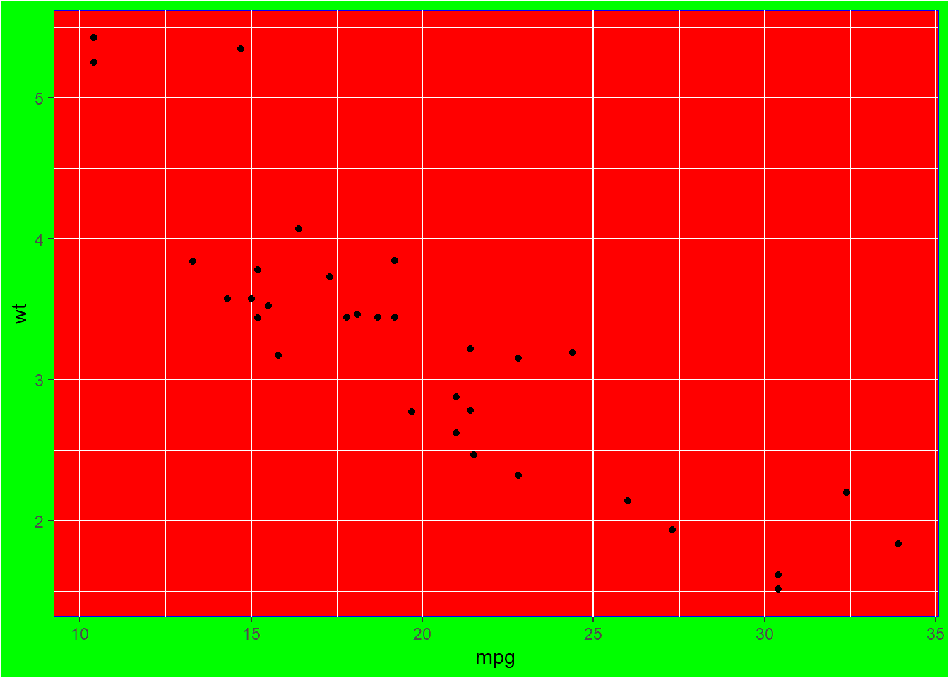 p <- ggplot(mtcars, aes(x = wt, y = mpg)) +