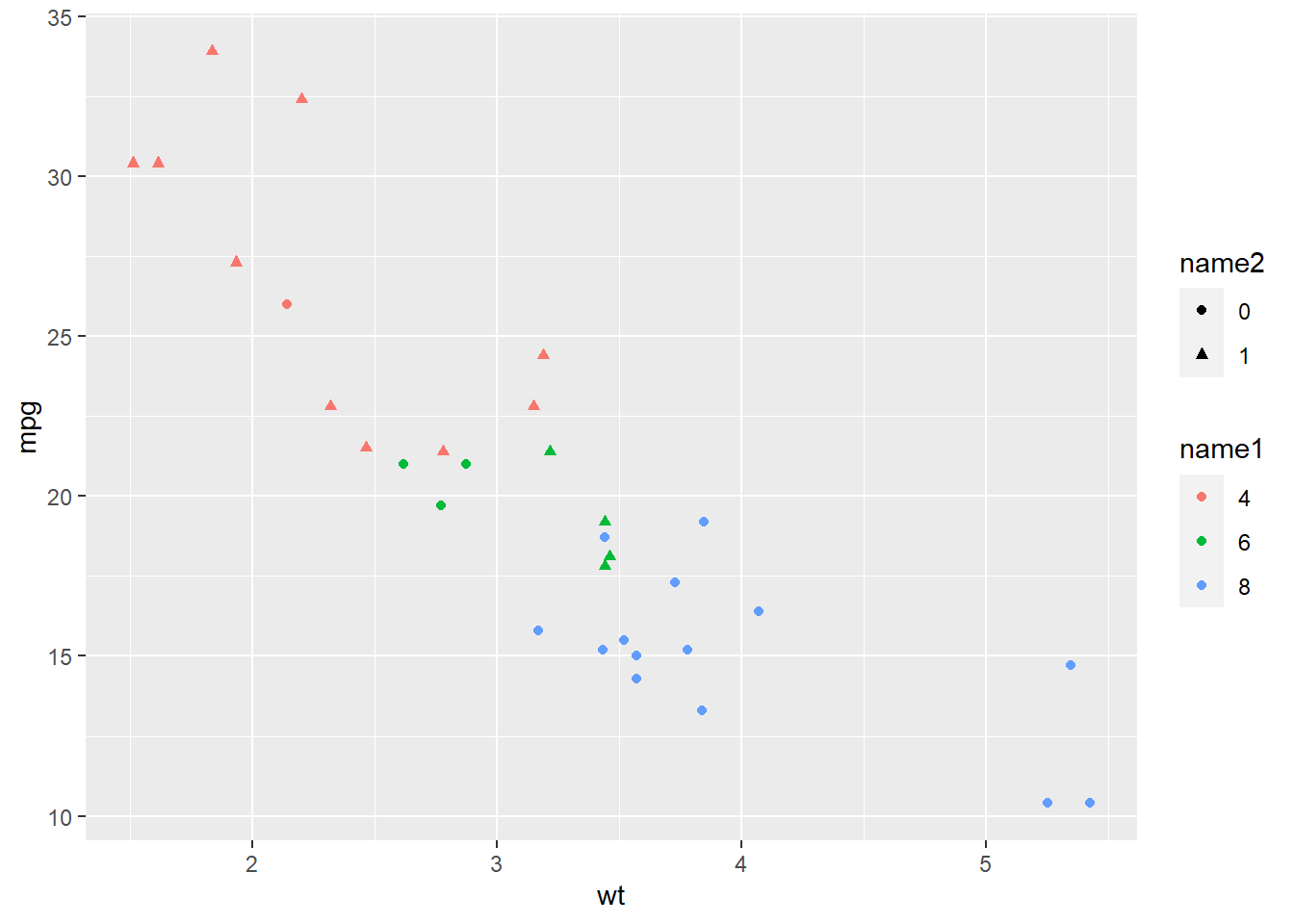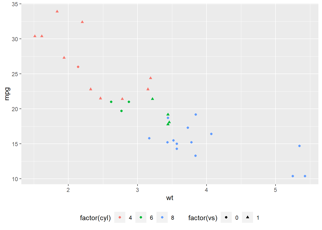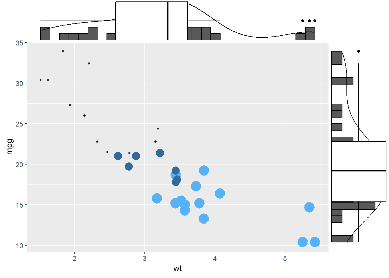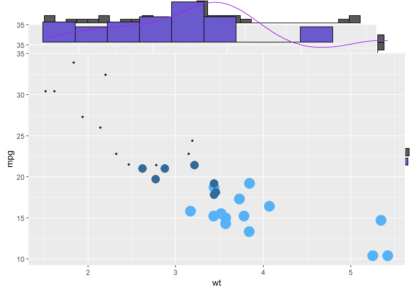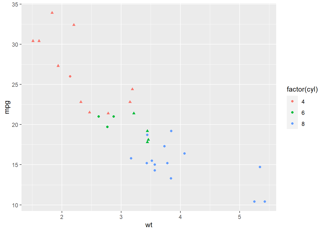 p <- ggplot(mtcars, aes(x = wt, y = mpg)) +
