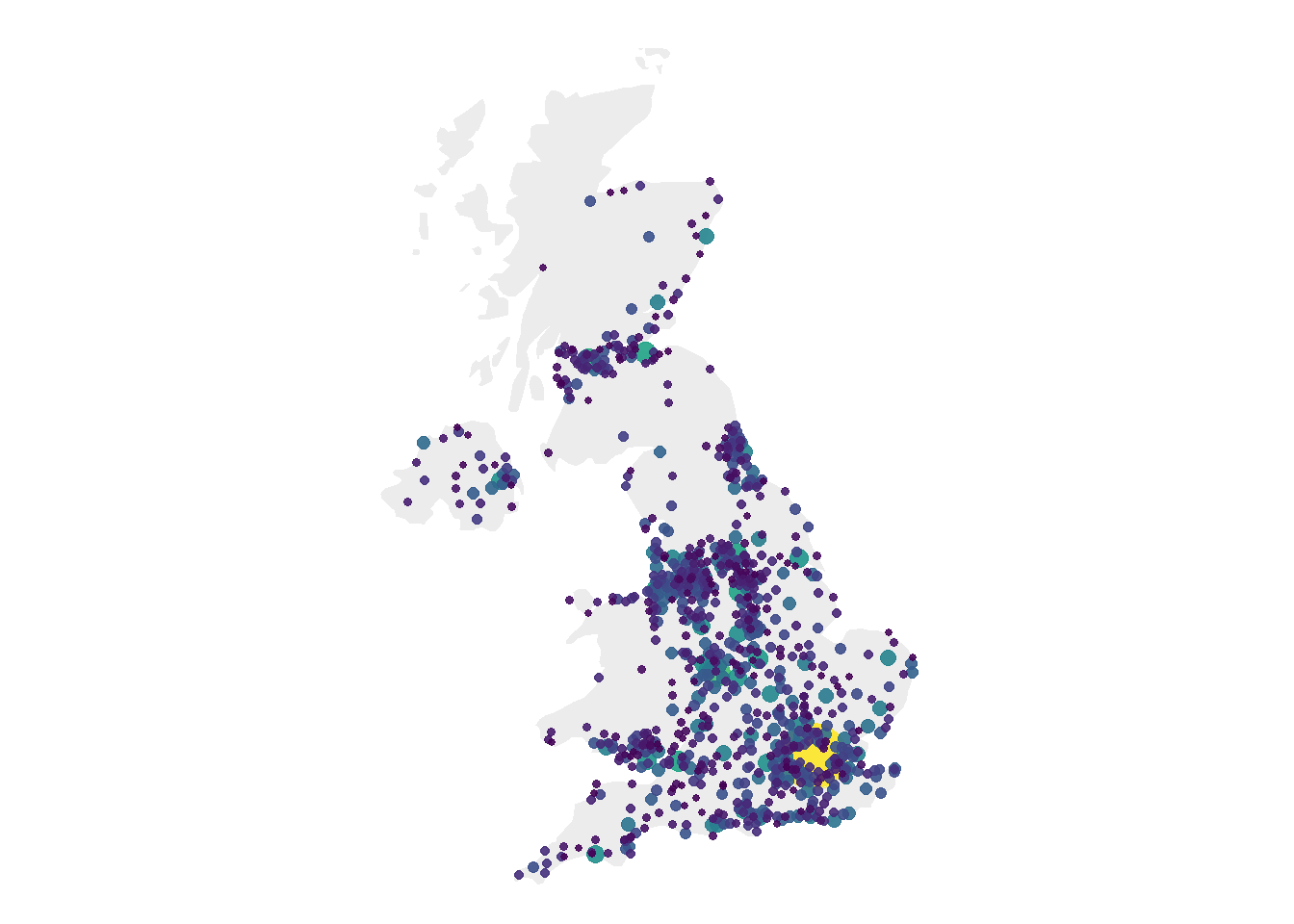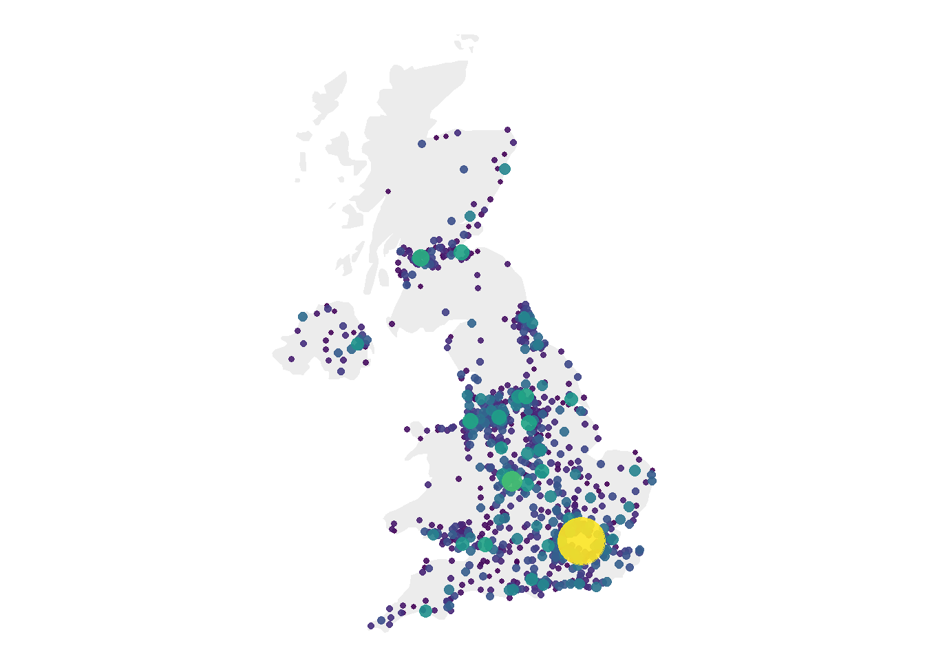This section provides a step-by-step approach to build the map beside, showing the 1000 biggest cities of the UK.