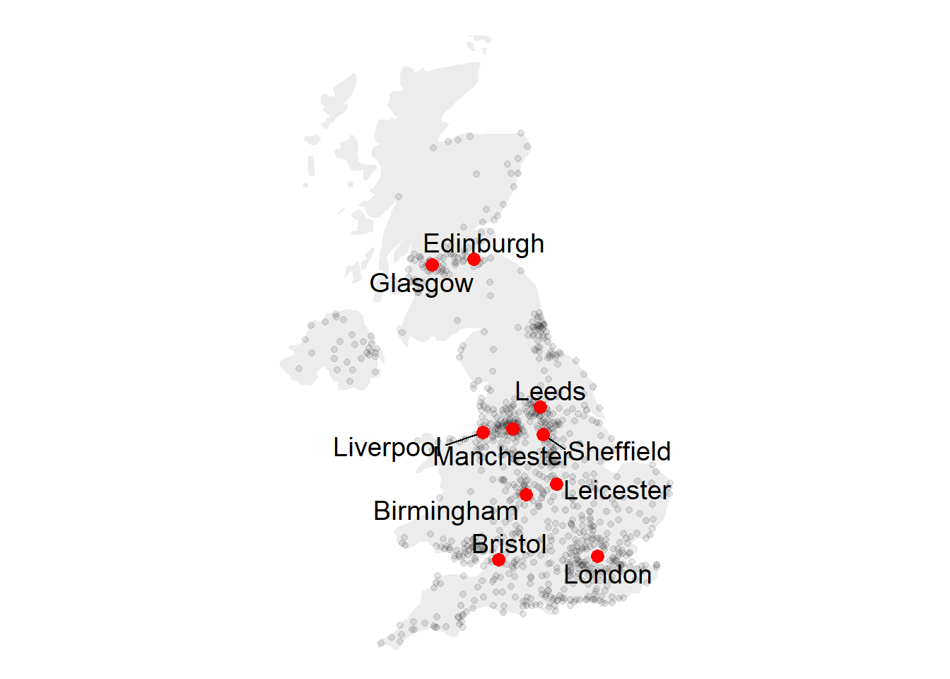 data <- world.cities %>% filter(country.etc=="UK")7.6.14 Basic Scatterplot Map
