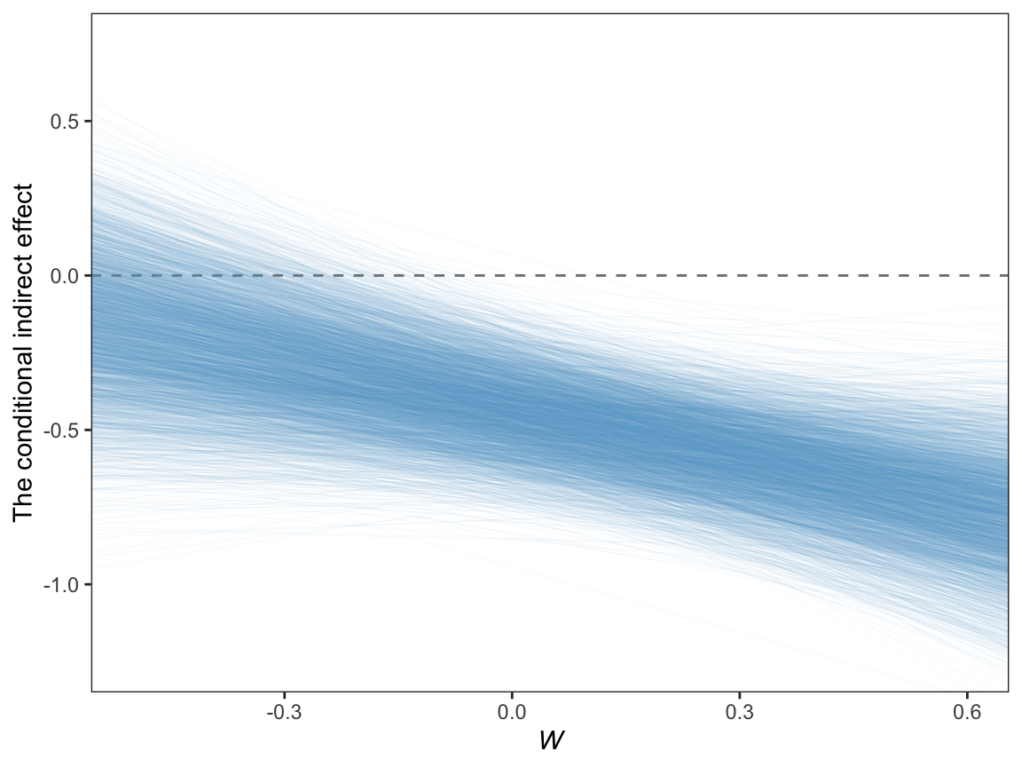 Much like above, we can make a plot of the conditional indirect effect \(ab_3\).