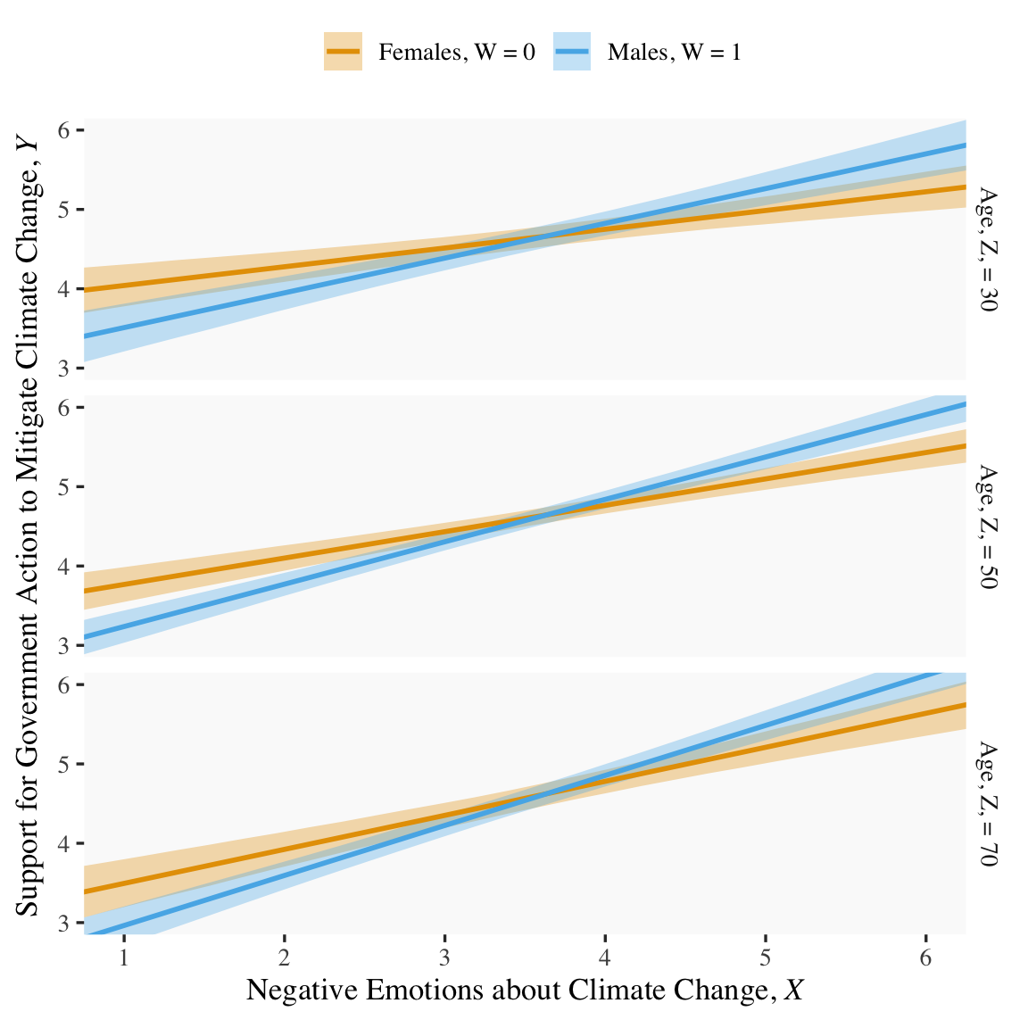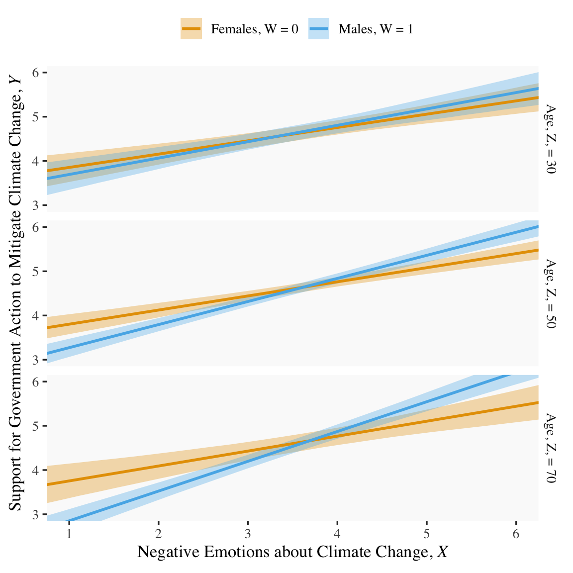 9.5.1 Comparing conditional effects in the additive multiple moderation model.