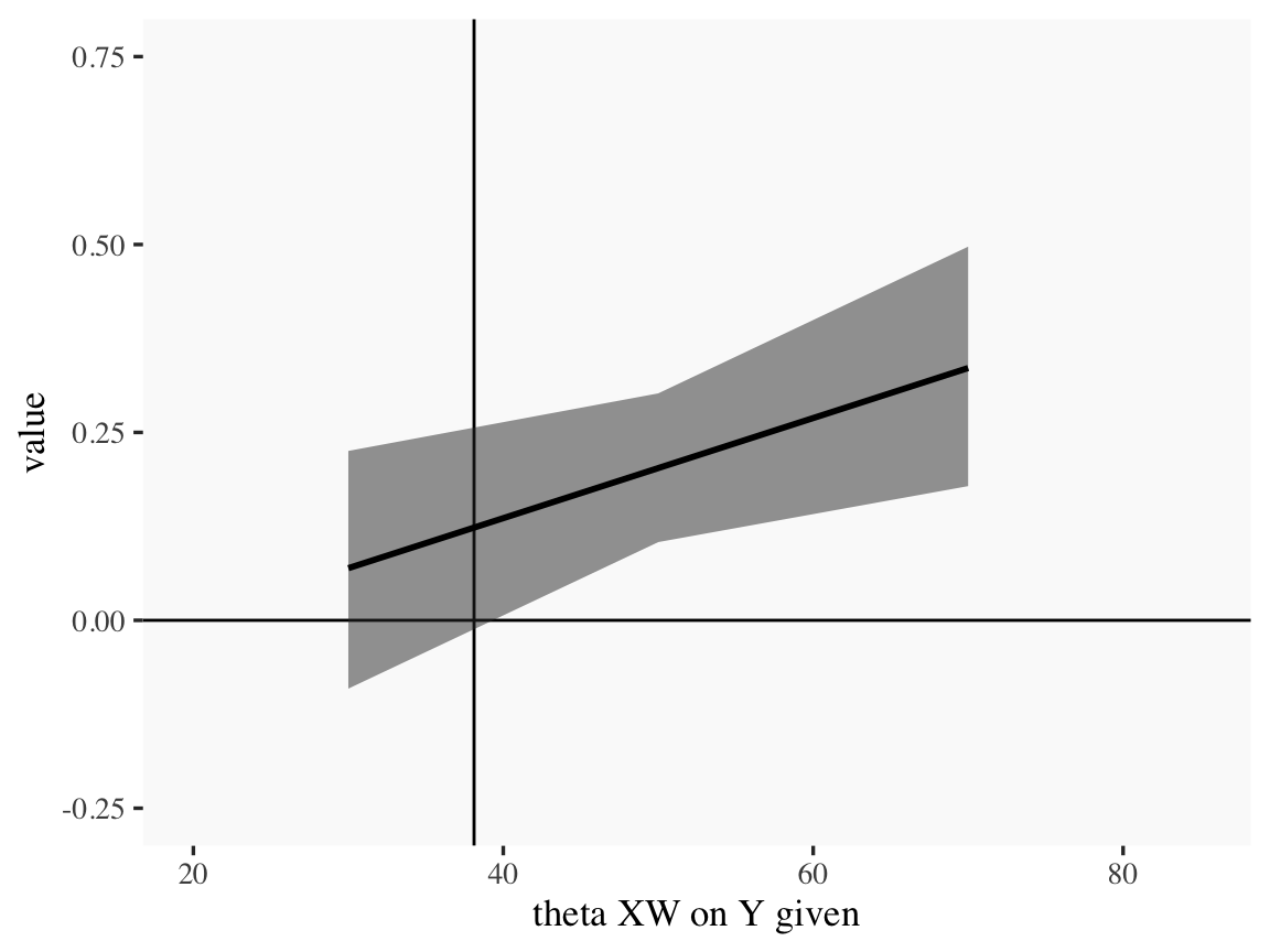 Finally, here we compute \(\theta_{XW \rightarrow Y} | (Z = 70)\).
