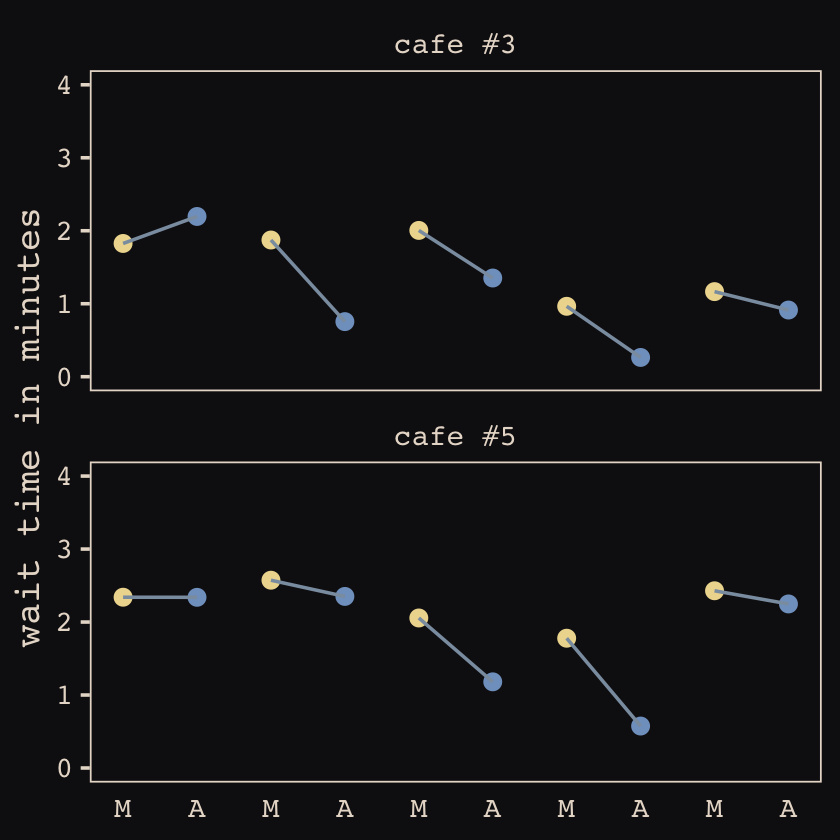 mutate(mu = a_cafe + b_cafe * afternoon) %>%