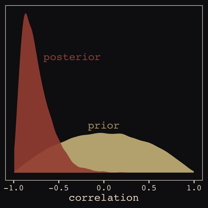 cor(vary_effects$a_cafe, vary_effects$b_cafe)## [1] -0.7281604