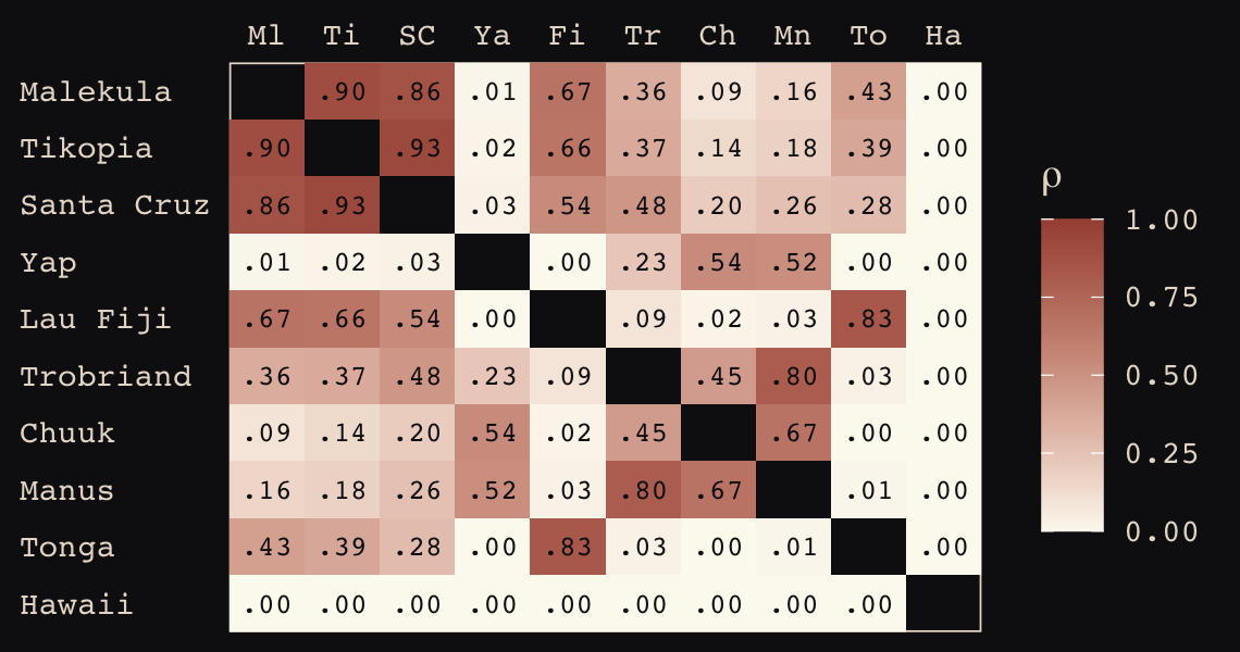 Again, these are not “data.” Figure 13.2 shows a distribution of parameters. Here’s their Pearson’s correlation coefficient.