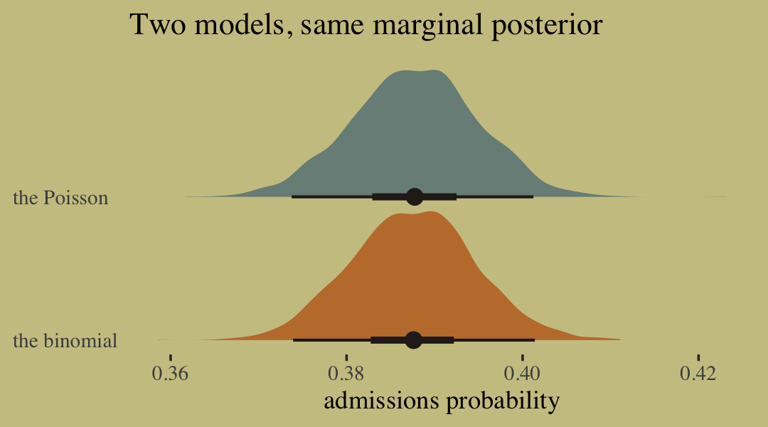 transmute(`the Poisson` = exp(b_admit_Intercept) / (exp(b_admit_Intercept) + exp(b_rej_Intercept))),