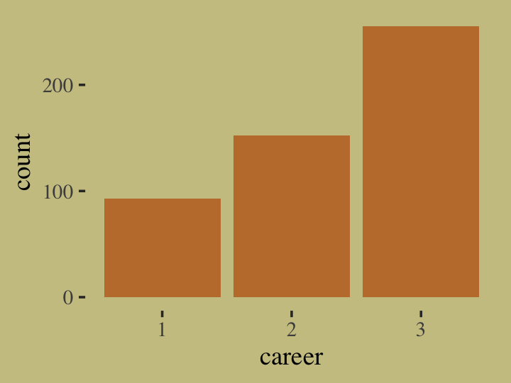 Sometimes a count variable is a number of events up until something happened. Call this “something” the terminating event. Often we want to model the probability of that event, a kind of analysis known as event history analysis or survival analysis. When the probability of the terminating event is constant through time (or distance), and the units of time (or distance) are discrete, a common likelihood function is the geometric distribution. This distribution has the form: