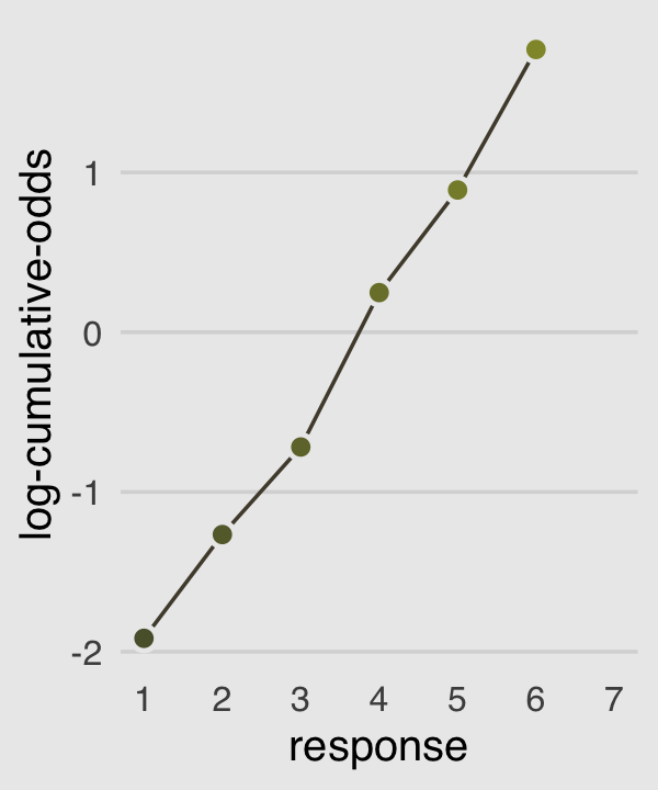 ggplot(aes(x = response, y = logit(cum_pr_k),